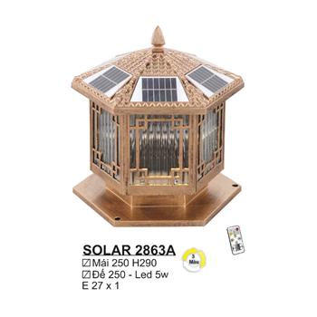 Đèn Trụ Cổng Vuông 5W: Nắp: Ø250-E27 - Đế: Ø195*H441, Vỏ Vàng Đồng SOLAR-36