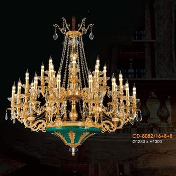 Đèn chùm nến đồng Veronia - Chao đá ngọc Ø1810*H2400, Led - E27 x 50 CĐ-8062/16+8+12+8+5