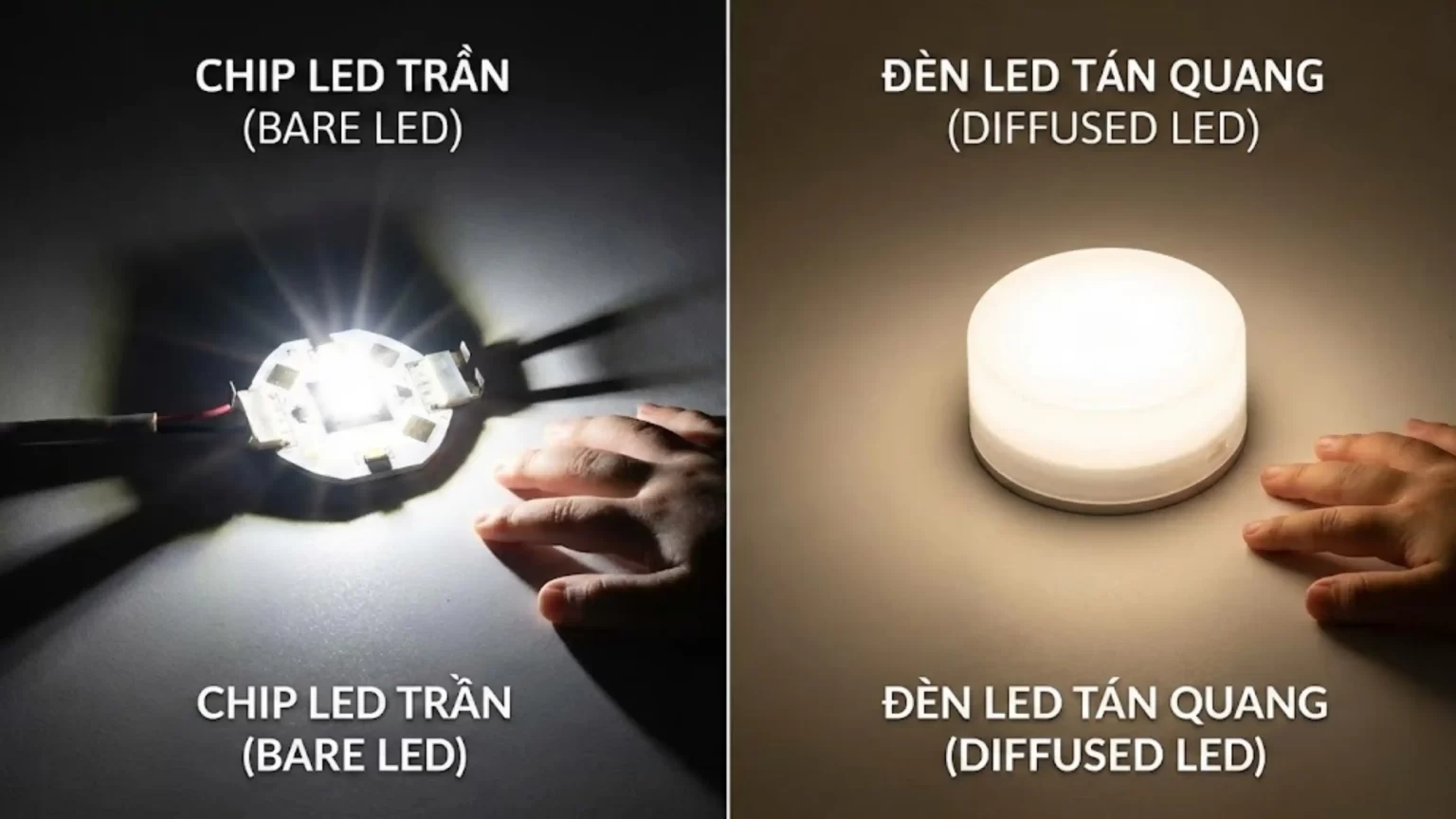 2. Tại sao Đèn LED BẮT BUỘC phải có tấm tán quang?