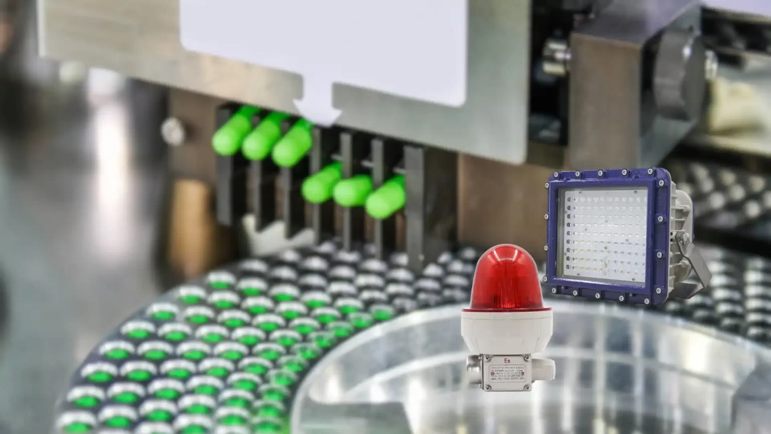 Trong các nhà máy sản xuất thực phẩm, dược phẩm, hoặc các sản phẩm y tế, việc kiểm soát môi trường và bảo vệ người lao động khỏi những nguy cơ cháy nổ là vô cùng quan trọng. Đặc biệt khi sản phẩm được sản xuất từ các nguyên liệu dễ cháy hoặc trong môi trường có bụi mịn, việc sử dụng đèn chiếu sáng chống nổ là bắt buộc để đảm bảo an toàn.