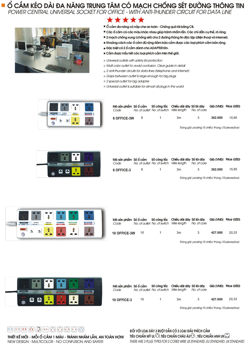- Các ổ căm có các màu khác nhau giúp tránh nhầm lẫn. Các chỉ dẫn cụ thể, rõ ràng.