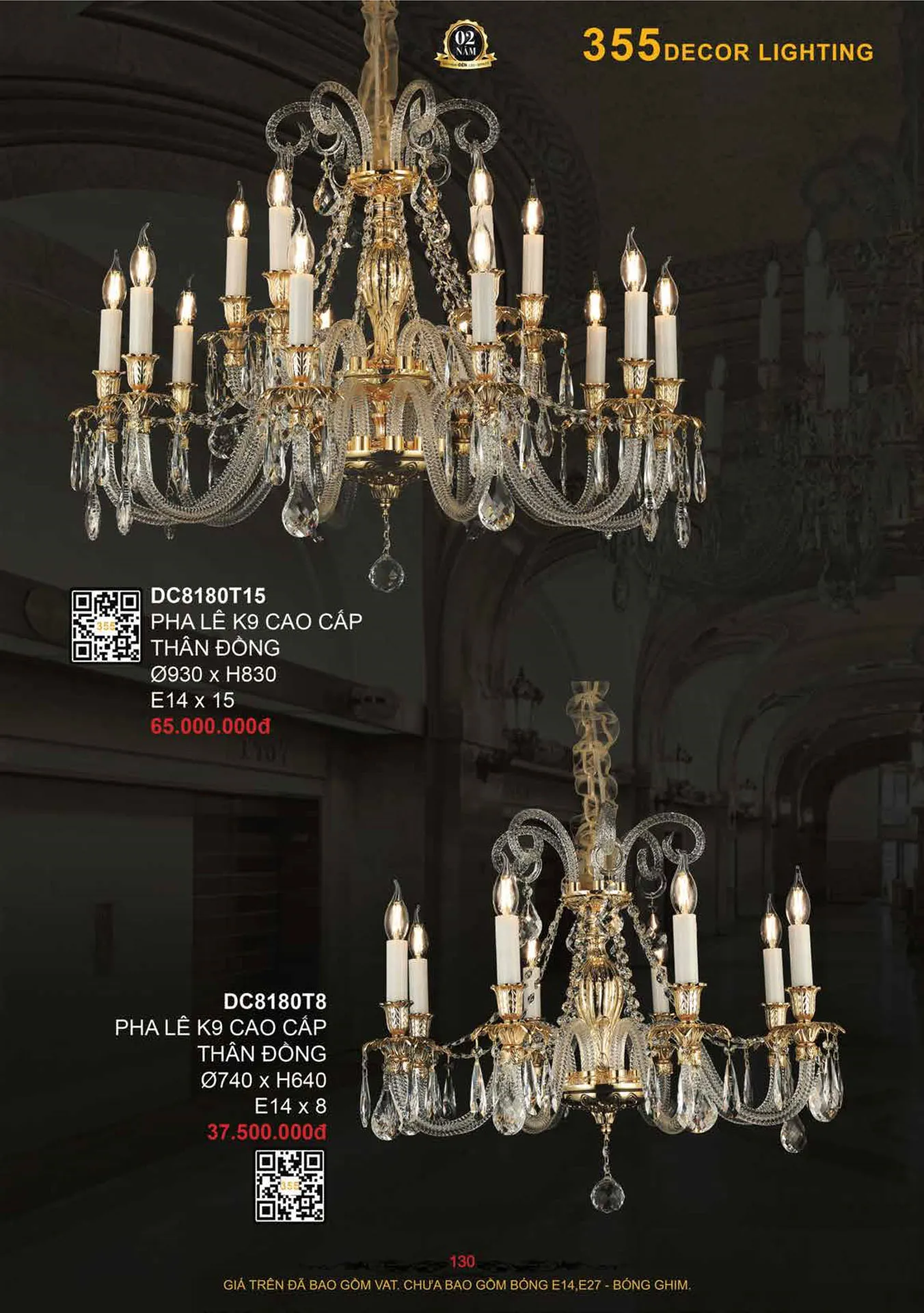 Đèn chùm pha lê K9 cao cấp - Thân đồng 355 DECOR Ø740*H640 - E14*8