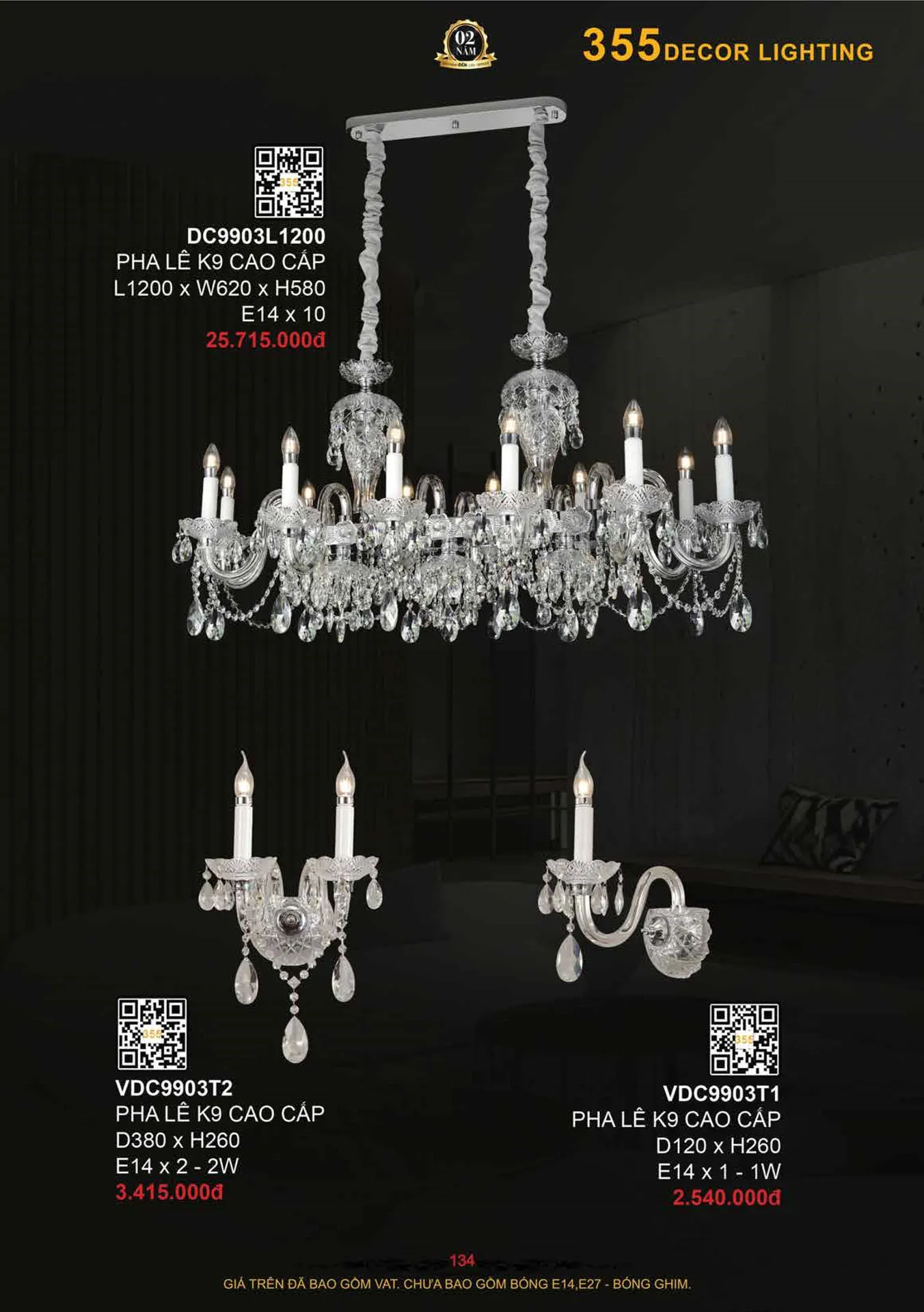 Đèn tường pha lê K9 cao cấp 355 decor D120*H260 - E14*1-1W