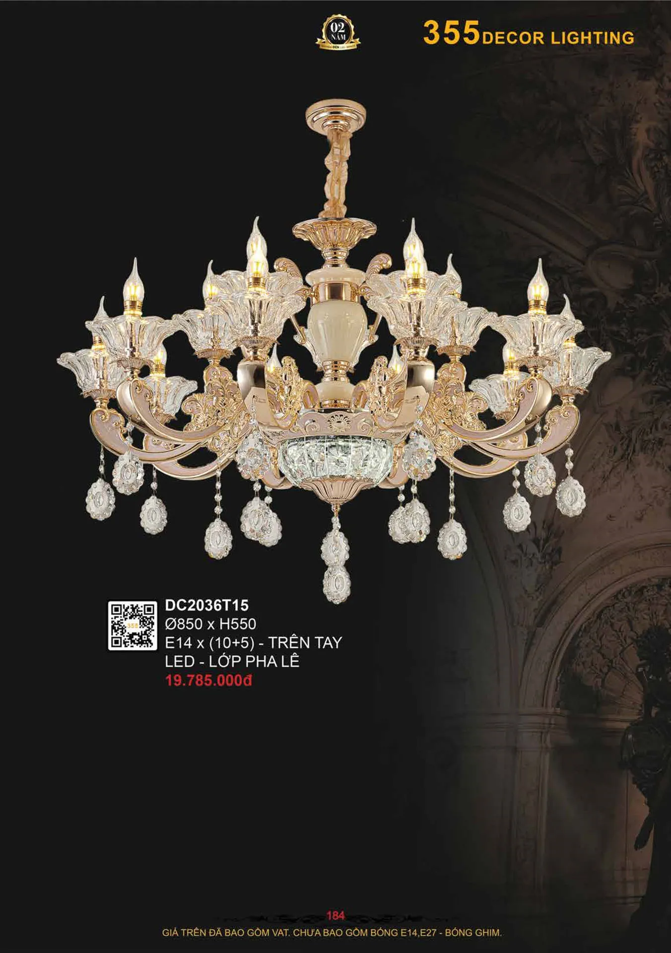 Đèn chùm nến Ø850*H550 - E14*(10+5) - Trên Tay, LED - Lớp Pha Lê