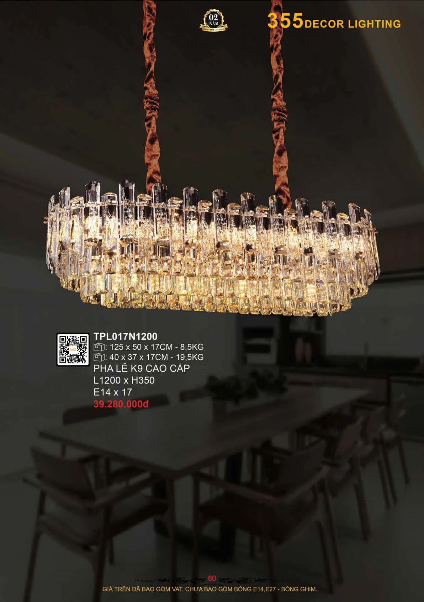 Đèn treo Pha Lê K9 cao cấp E14*27 - L1200*H350