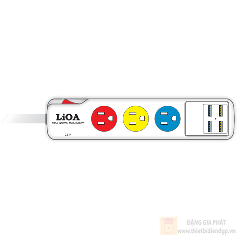 Ổ cắm kéo dài LiOA tiêu chuẩn Mỹ - Nhật - 3m - 3 Ổ + 4 USB Type A