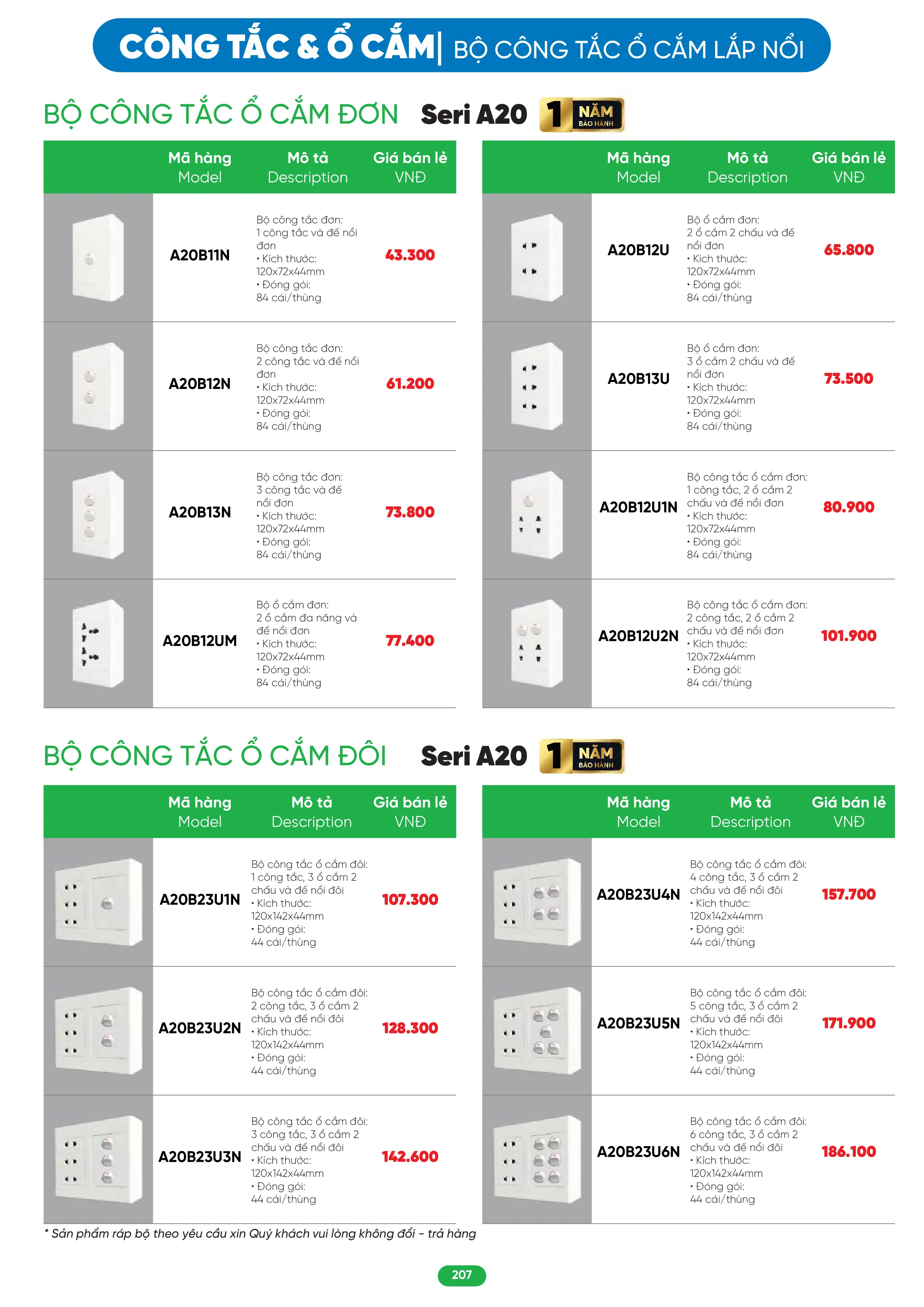 Bộ công tắc ổ cắm đôi MPE A20B23U4N