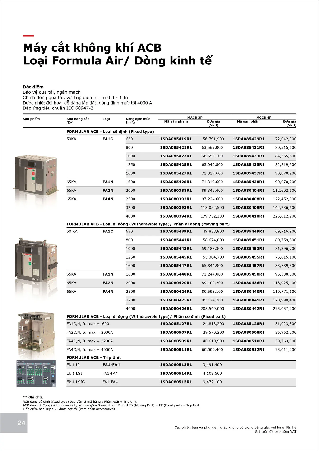 ACB Formular ABB FA1C 4P 50kA 630A loại cố định