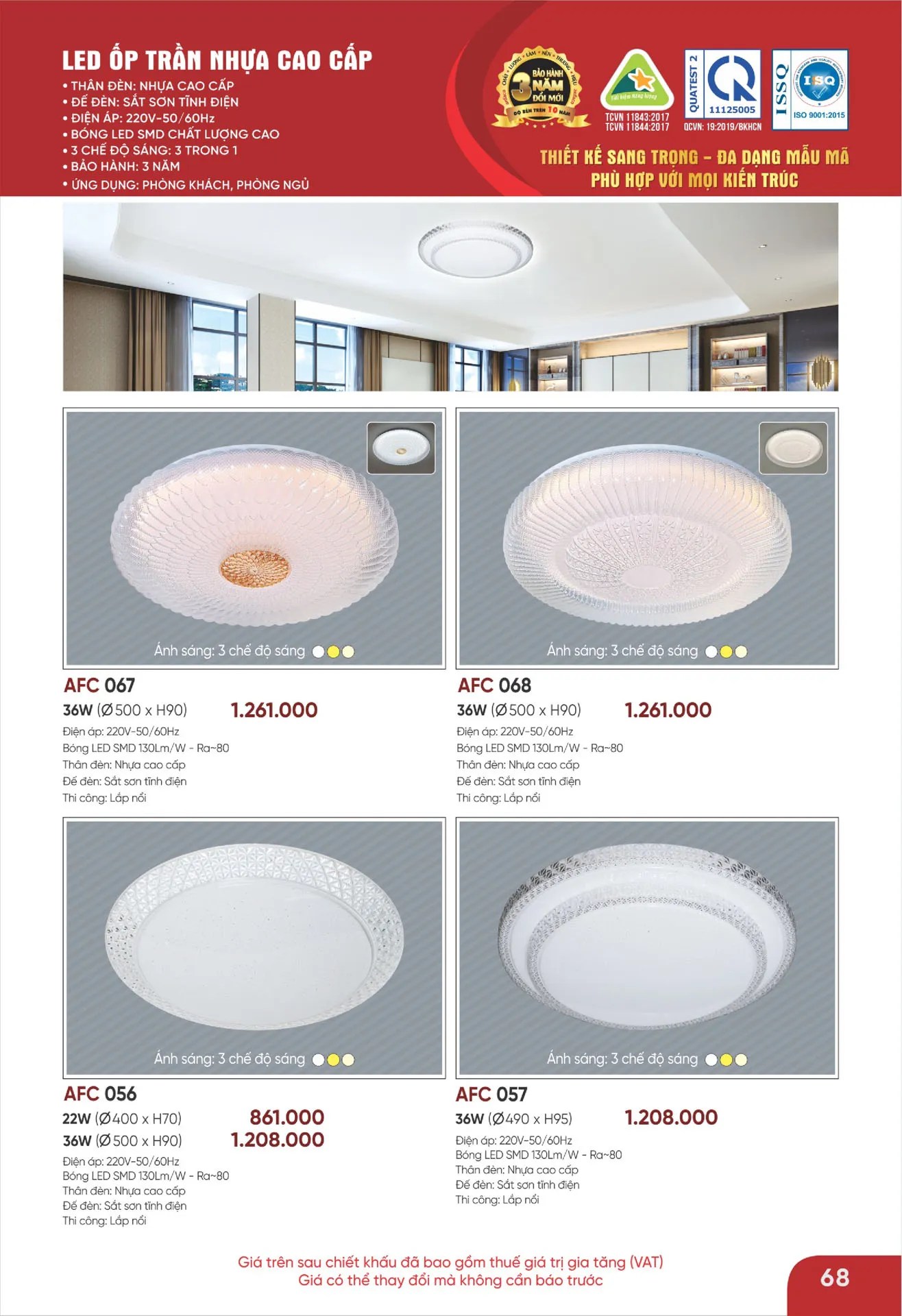 Đèn ốp trần nhựa cao cấp Anfaco AFC 067 36W 3CĐ