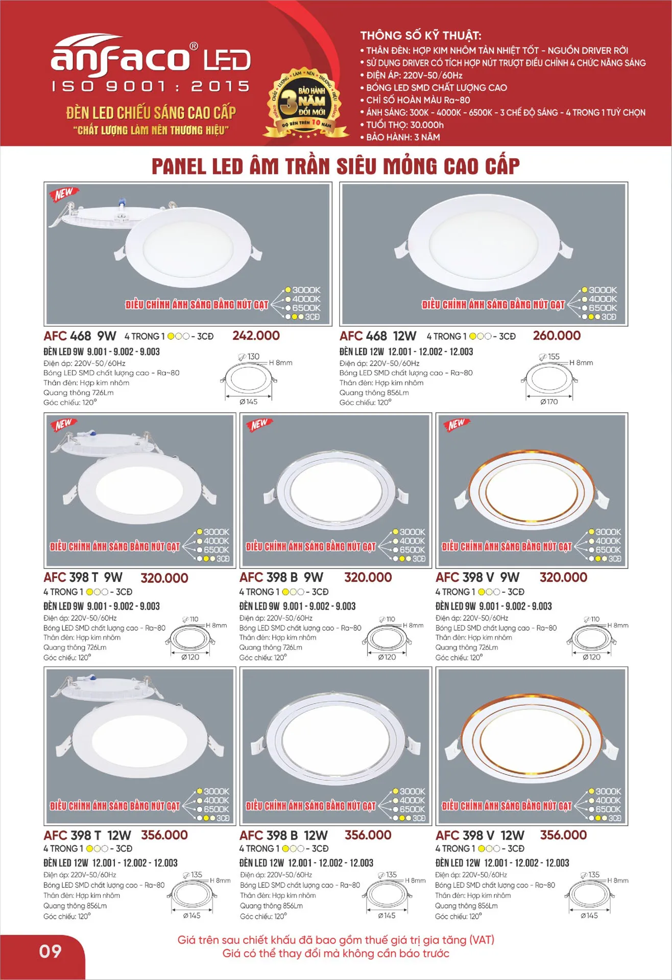 Đèn âm trần siêu mỏng cao cấp Anfaco AFC 398 V