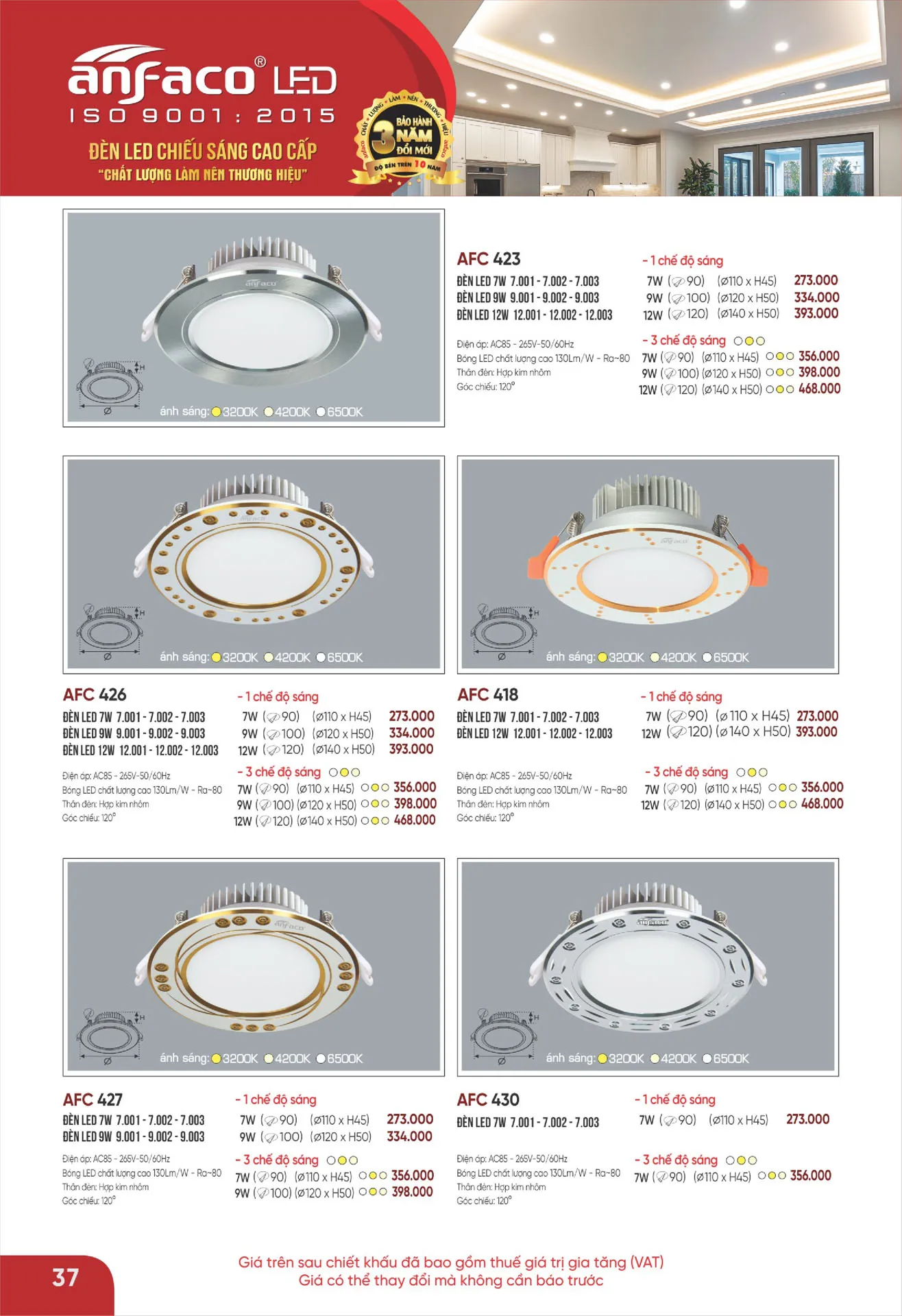 Ánh sáng vàng | AFC 427 Led 7W | 273.000 | 40% | 163.800 |