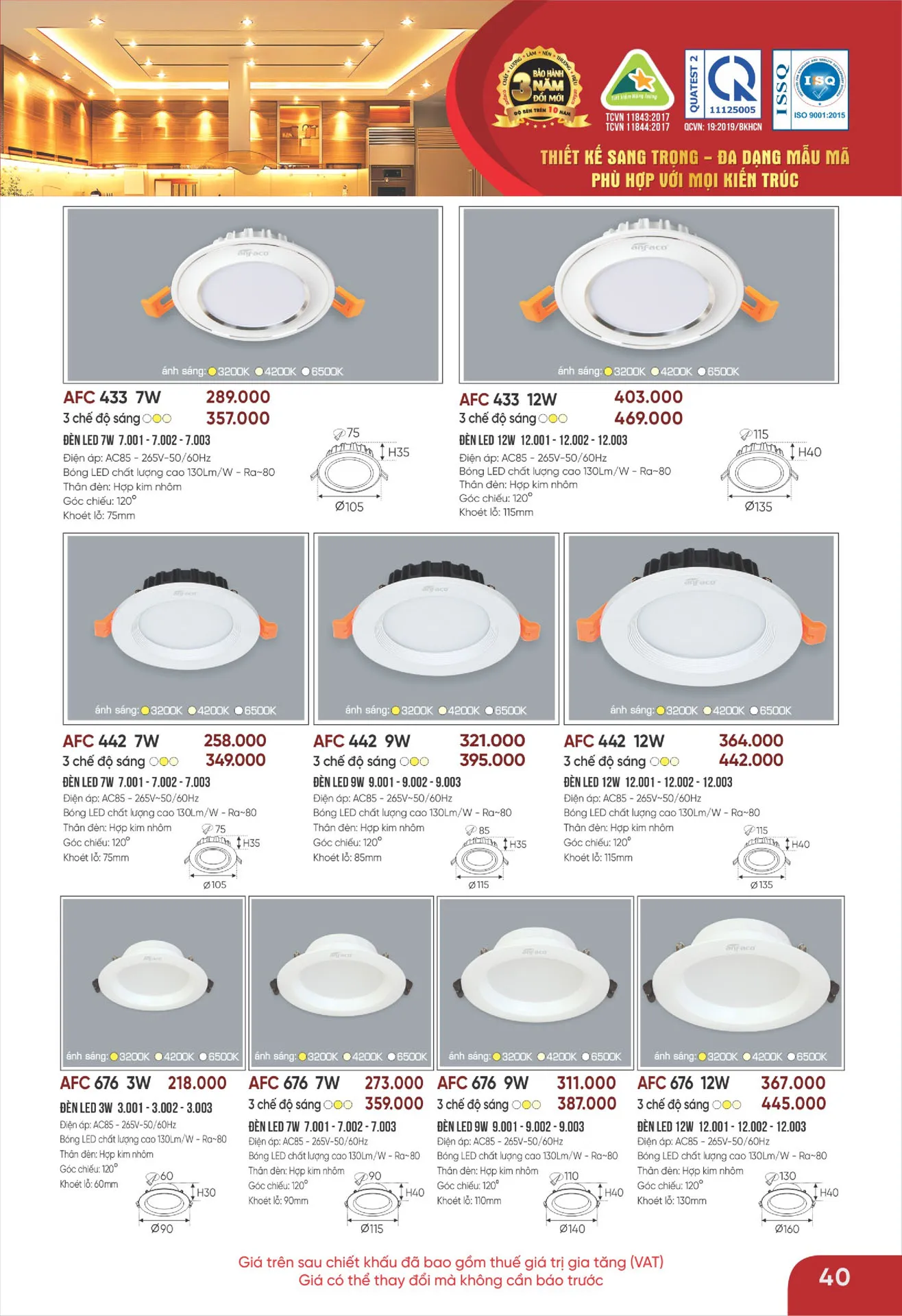 Ánh sáng trung tính | AFC 442 9W | 321.000 | 40% | 192.600 |
