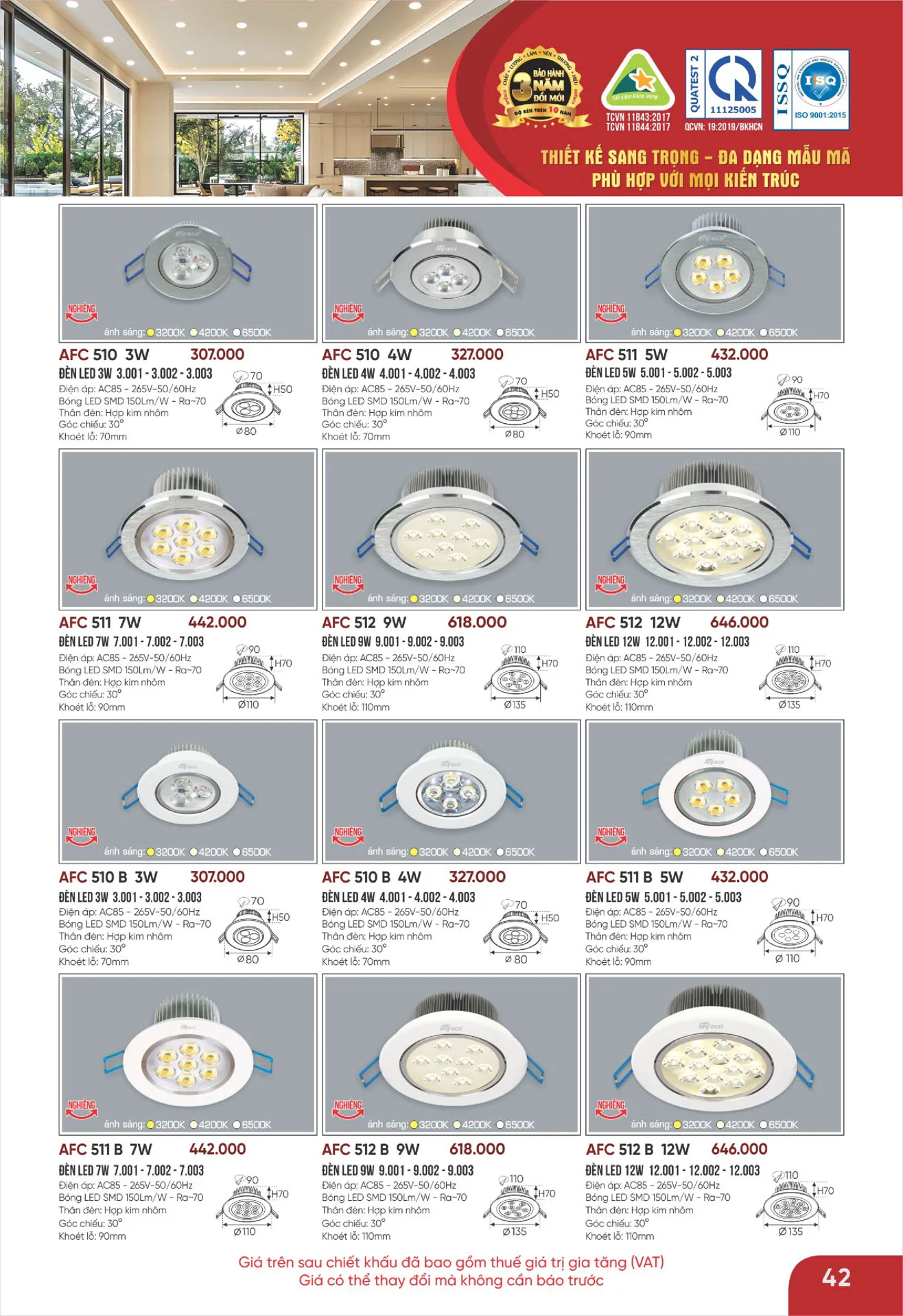 Ánh sáng trung tính | AFC 511 B 7W | 442.000 | 40% | 265.200 |