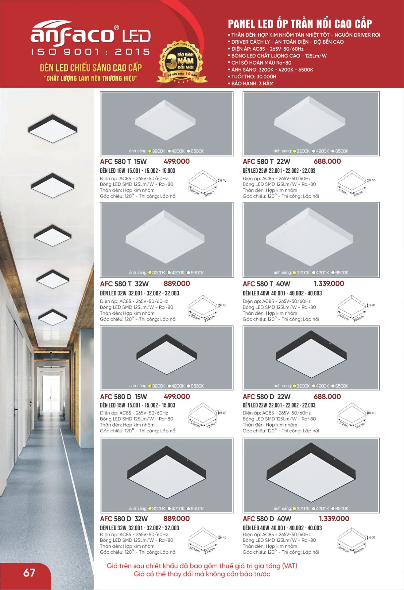 40W | AFC 580 D 40W | 300*300*H40 mm | 1.339.000 | 40% | 803.400 |