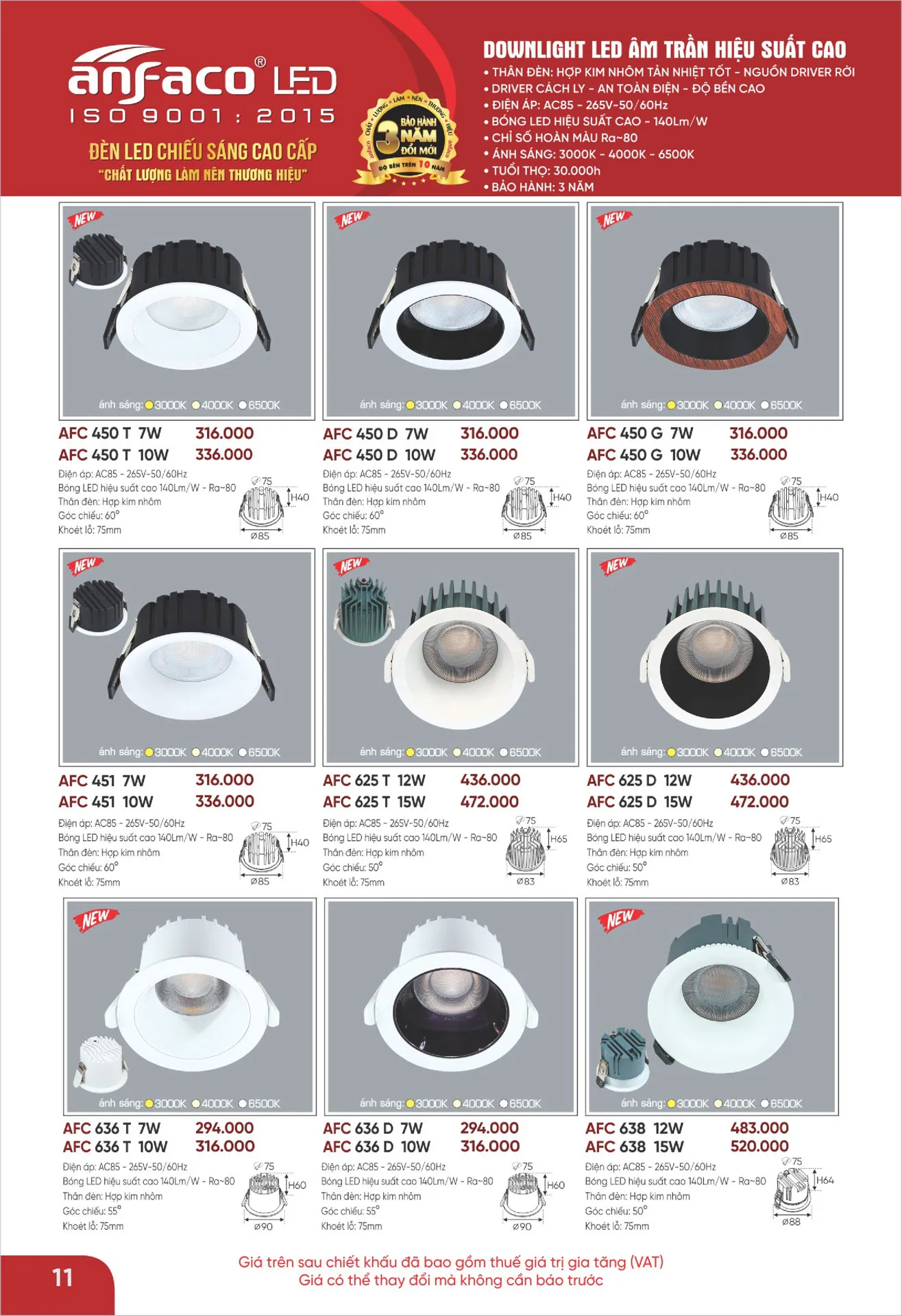 Đèn âm trần hiệu xuất cao Anfaco AFC 636 D