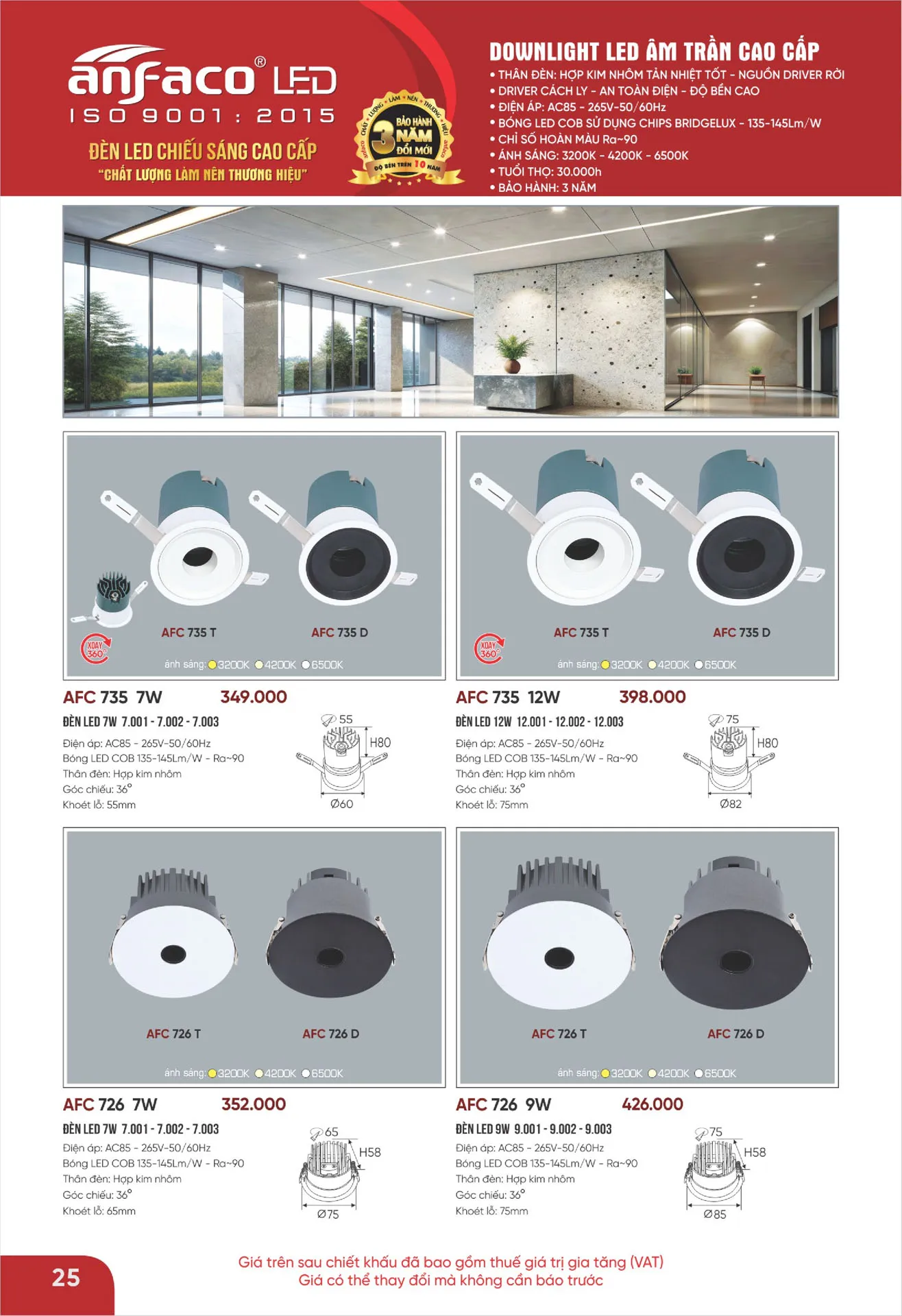 Ánh sáng trung tính | AFC 735 T Led 7W | 349.000 | 40% | 209.400 |