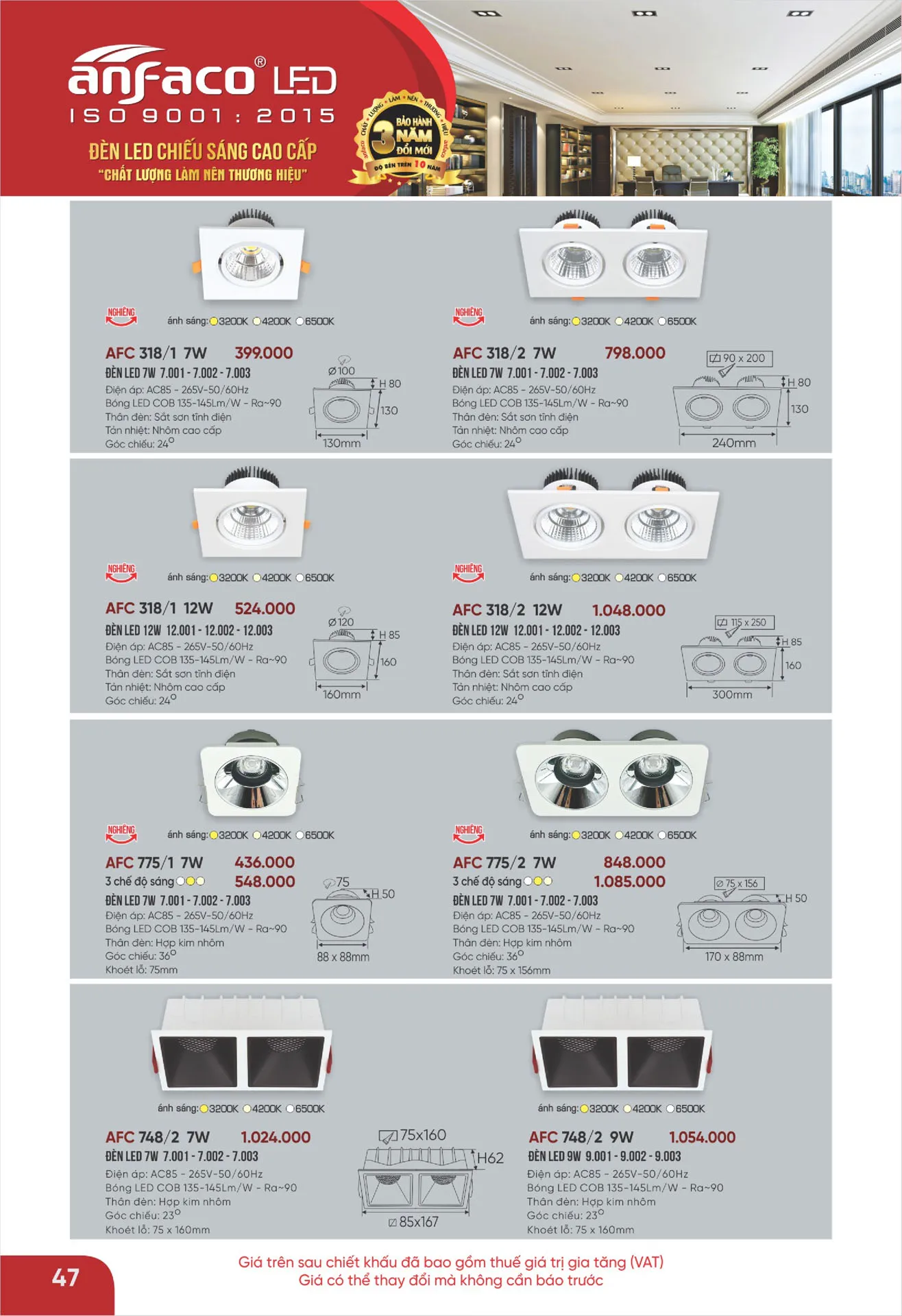 Đèn downlight âm trần đôi Anfaco AFC 748/2