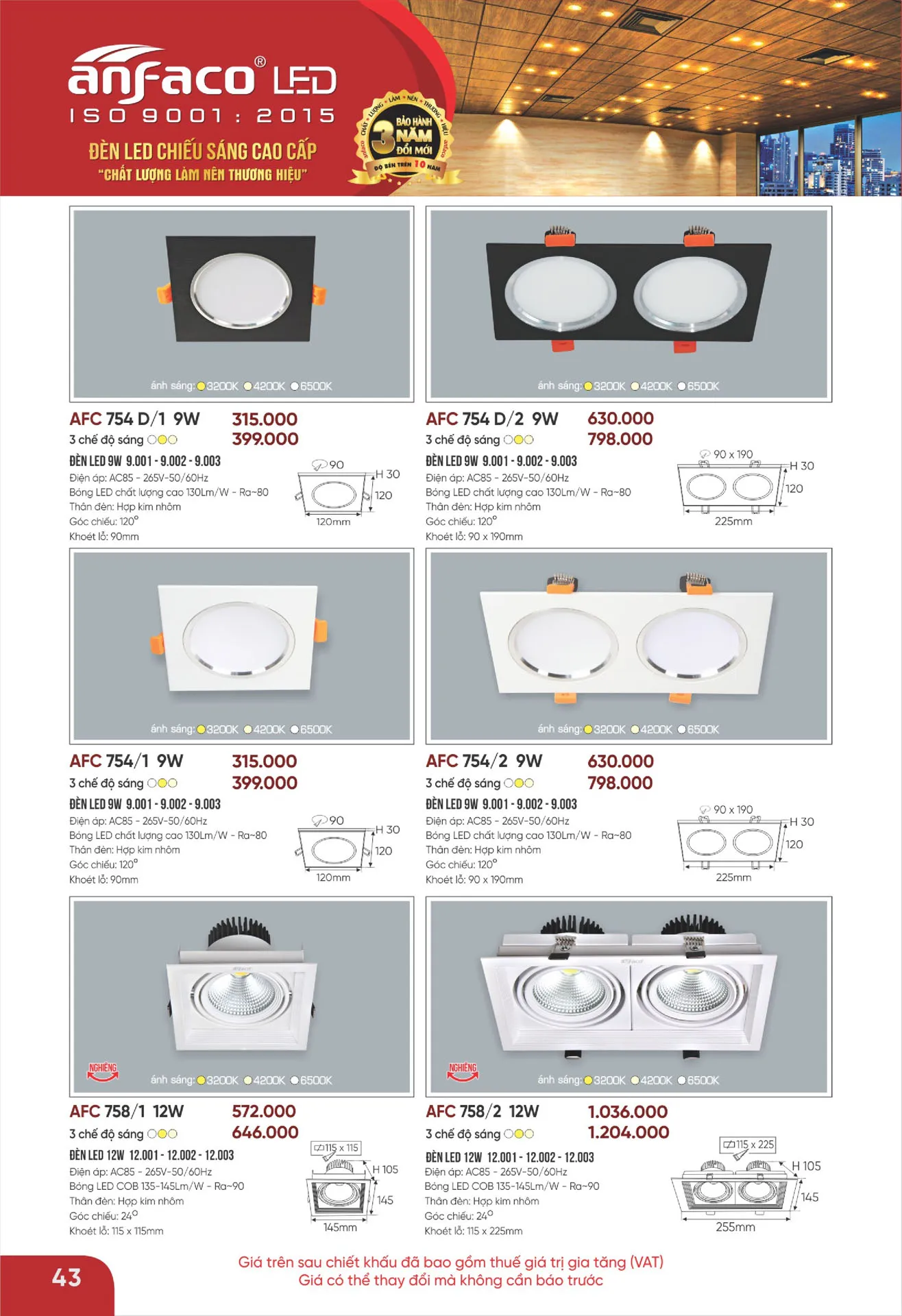 Ứng dụng đèn downlight led 1 chế độ Anfaco:
