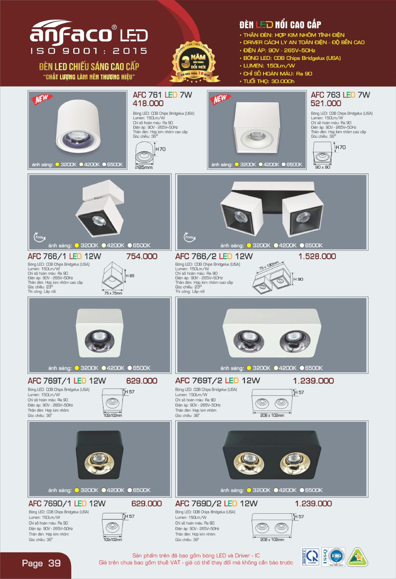 Ánh sáng trung tính | AFC 763 LED 7W | 521.000 | 40% | 312.600 |