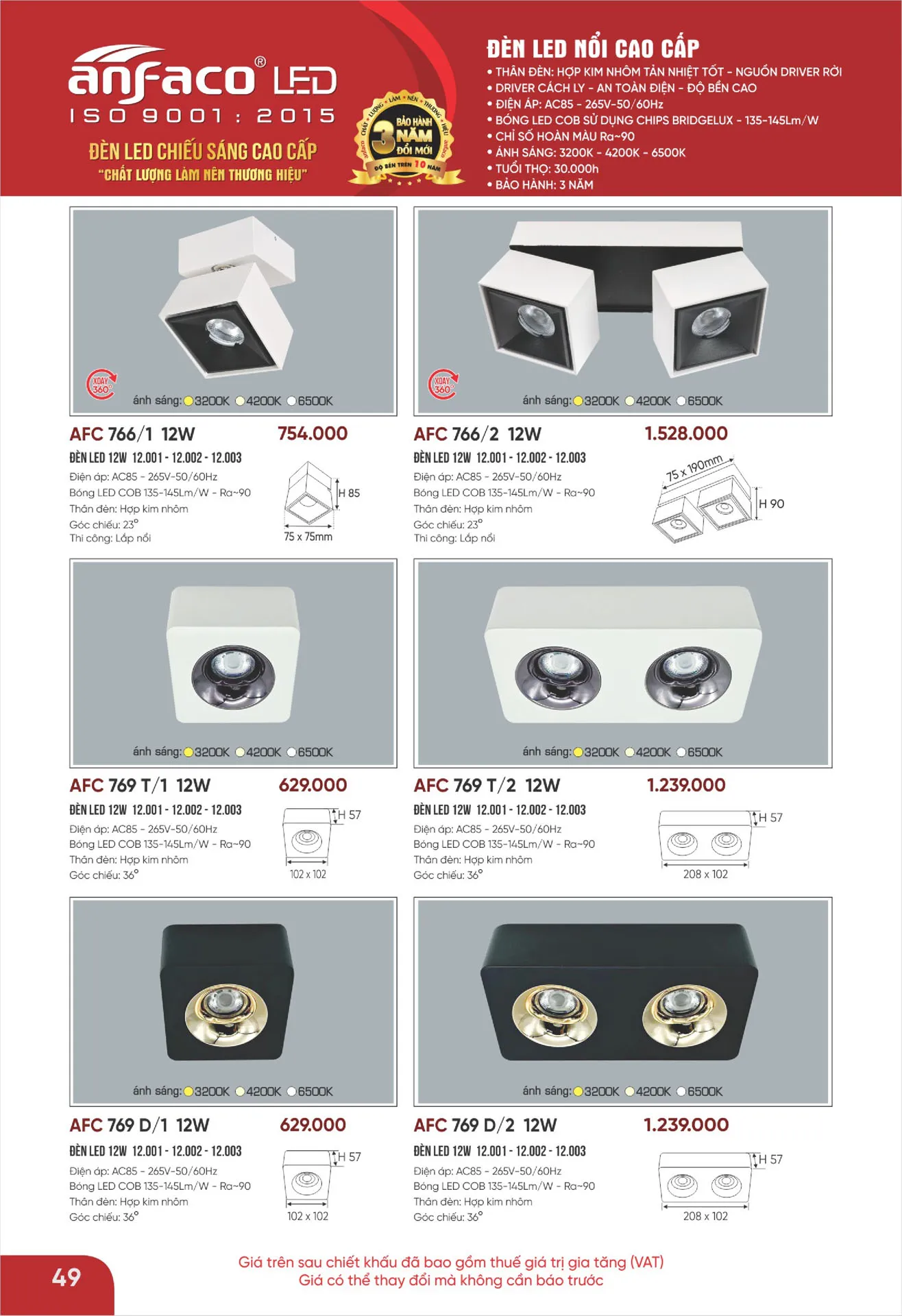 Ánh sáng trắng | AFC 769 T/2 12W | 1.239.000 | 40% | 743.400 |