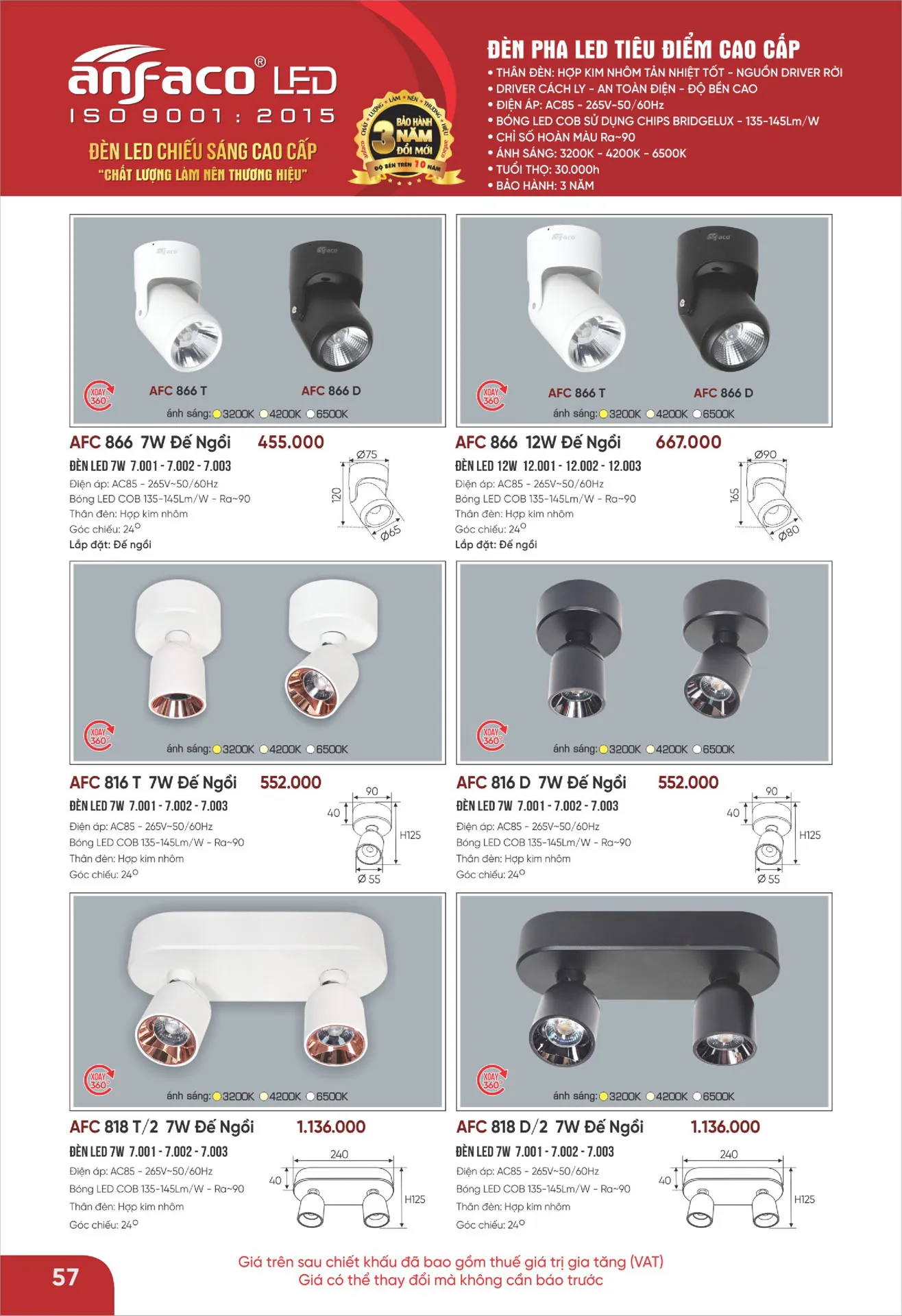 Ánh sáng vàng | AFC 866 D 7W | 455.000 | 40% | 273.000 |