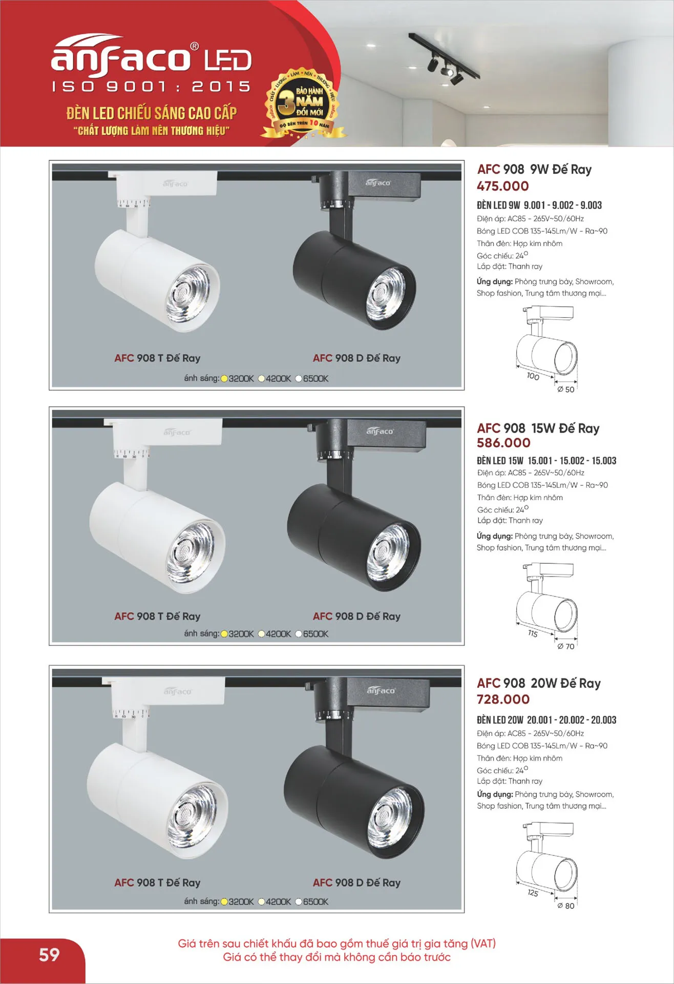 Đèn ray chiếu điểm cao cấp anfaco AFC 908 D vỏ đen