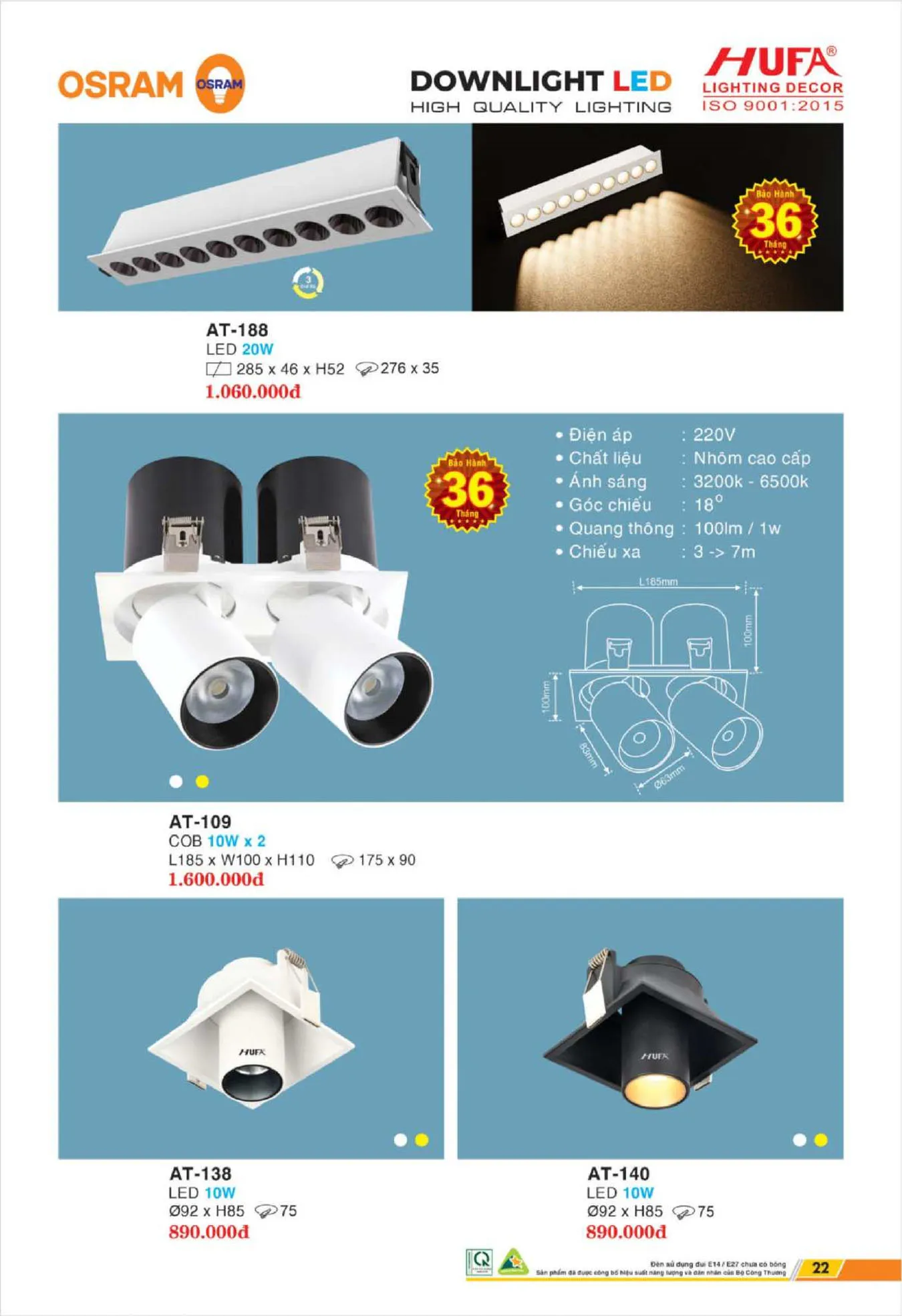 Đèn downlight âm trần hợp kim nhôm cao cấp HUFA Ø185*H110-10*2W, khoét lỗ 175*90