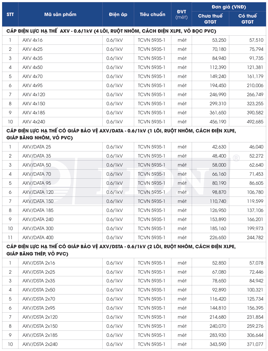 AXV/DSTA-2x50-0.6/1kV | AXV/DSTA-2x50-0.6/1kV | 100.321 | 14% | 86.277 |