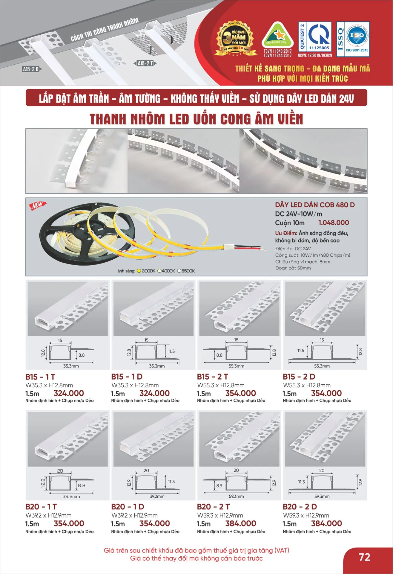 Thanh nhôm led uốn cong âm viền Anfaco B15 - 2 T 1.5m