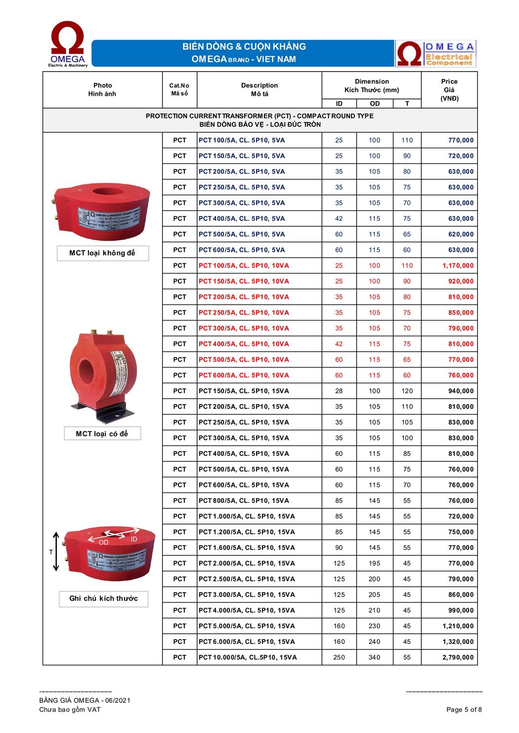 Biến dòng bảo vệ PCT OMEGA loại đúc tròn 5VA (loại không đế)