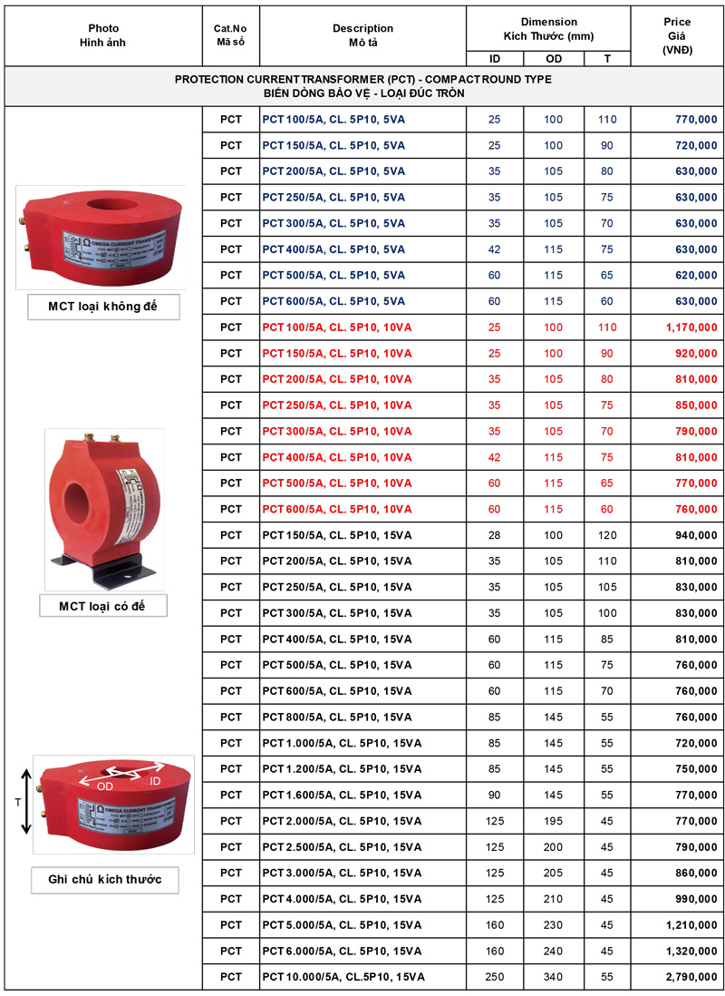 Biến dòng bảo vệ PCT OMEGA loại đúc tròn 15VA