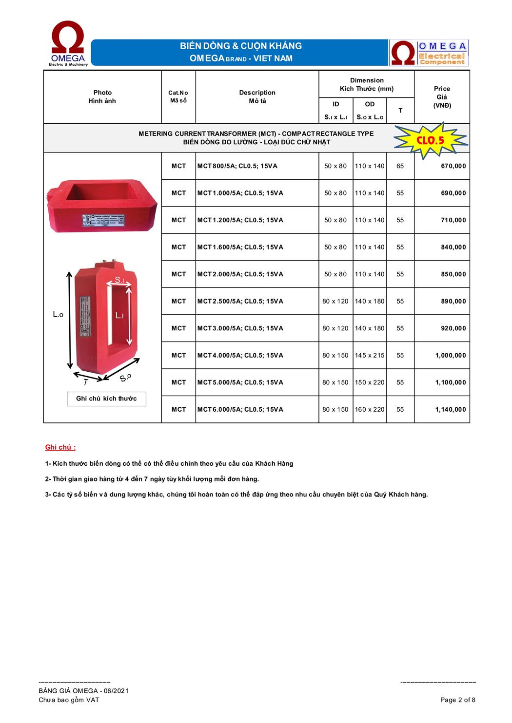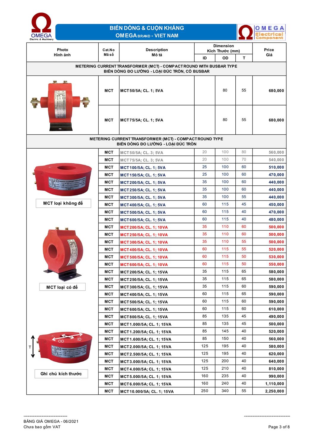 Biến dòng đo lường MCT OMEGA loại đúc tròn 15VA