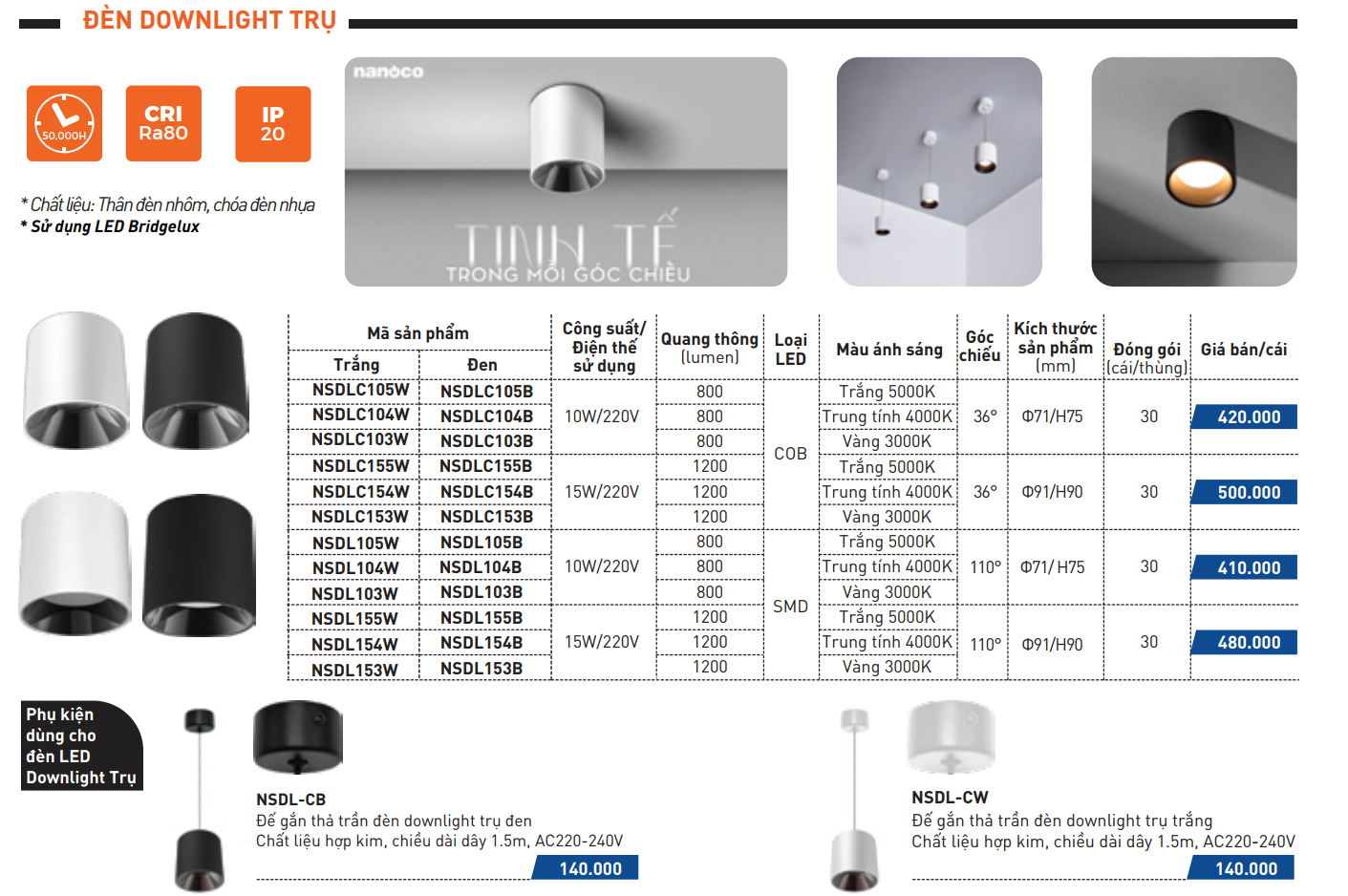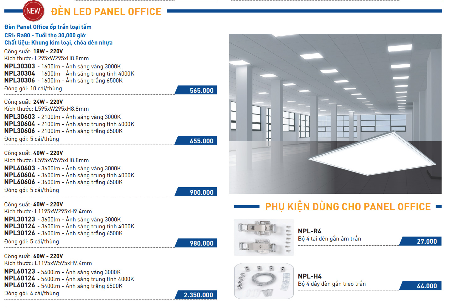 Bộ 4 dây treo dùng cho đèn Panel tấm back lit | NPLB-H4 | 66.000 |