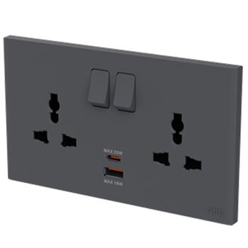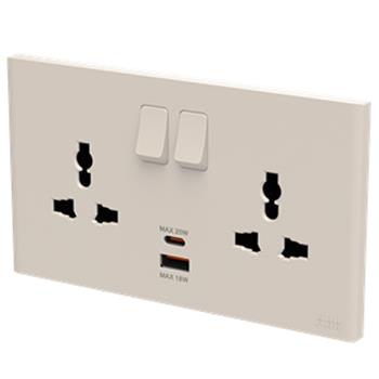Bộ ổ cắm đa năng đôi ABB Framia BC250 16A kèm công tắc và cổng sạc type A+C
