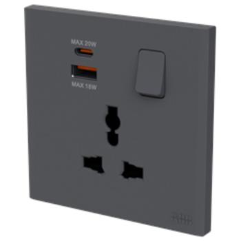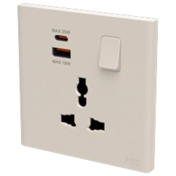 Bộ ổ cắm đa năng đơn ABB Framia BC251 16A kèm công tắc và cổng sạc type A+C