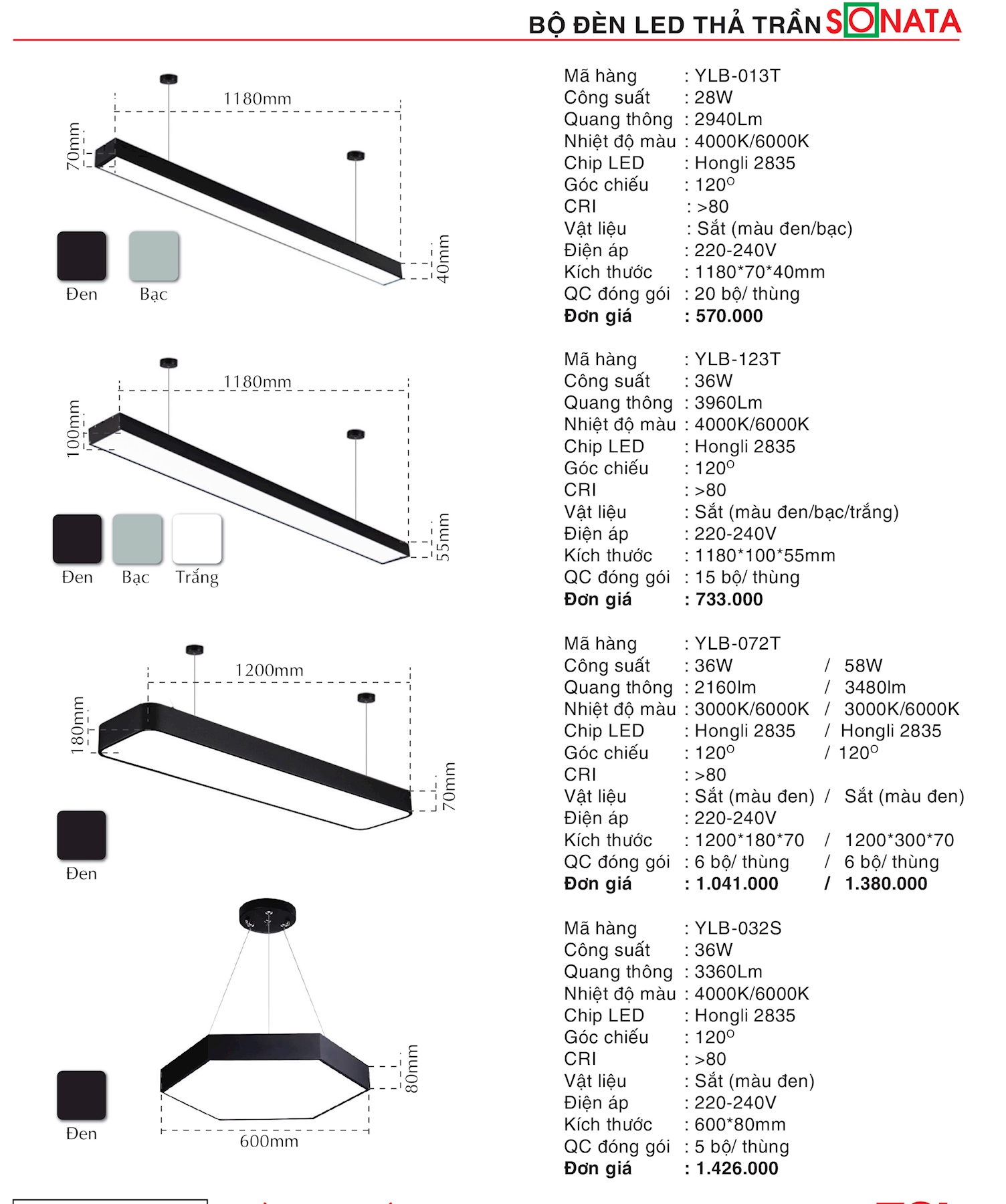 | 2 |  | Ánh sáng Vàng | YLB-072T | 1.380.000 | 38% | 855.600 |