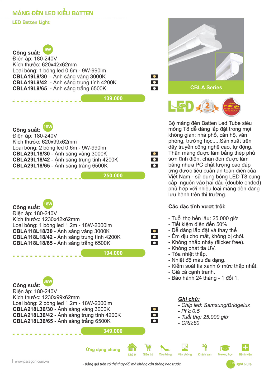 Máng đèn LED kiểu Batten dân dụng CBLA là một trong những sản phẩm nổi bật của Paragon chuyên dùng cho các khu vực như phòng khách, phòng ngủ, văn phòng làm việc, nhà kho, cửa hàng hay trường học, thư viện, nhà sách, … Có chế độ bảo hành 2 năm.