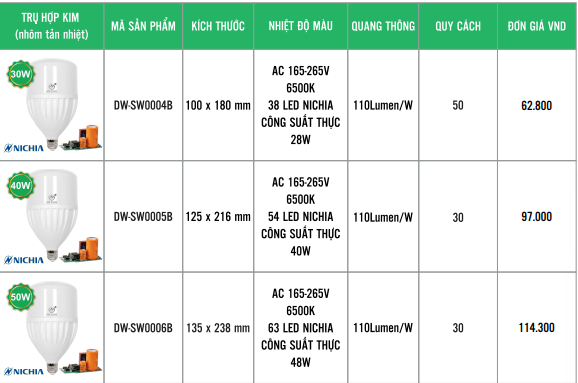 - Tuổi thọ trên 30.000h không hạn chế số lần bật tắt
