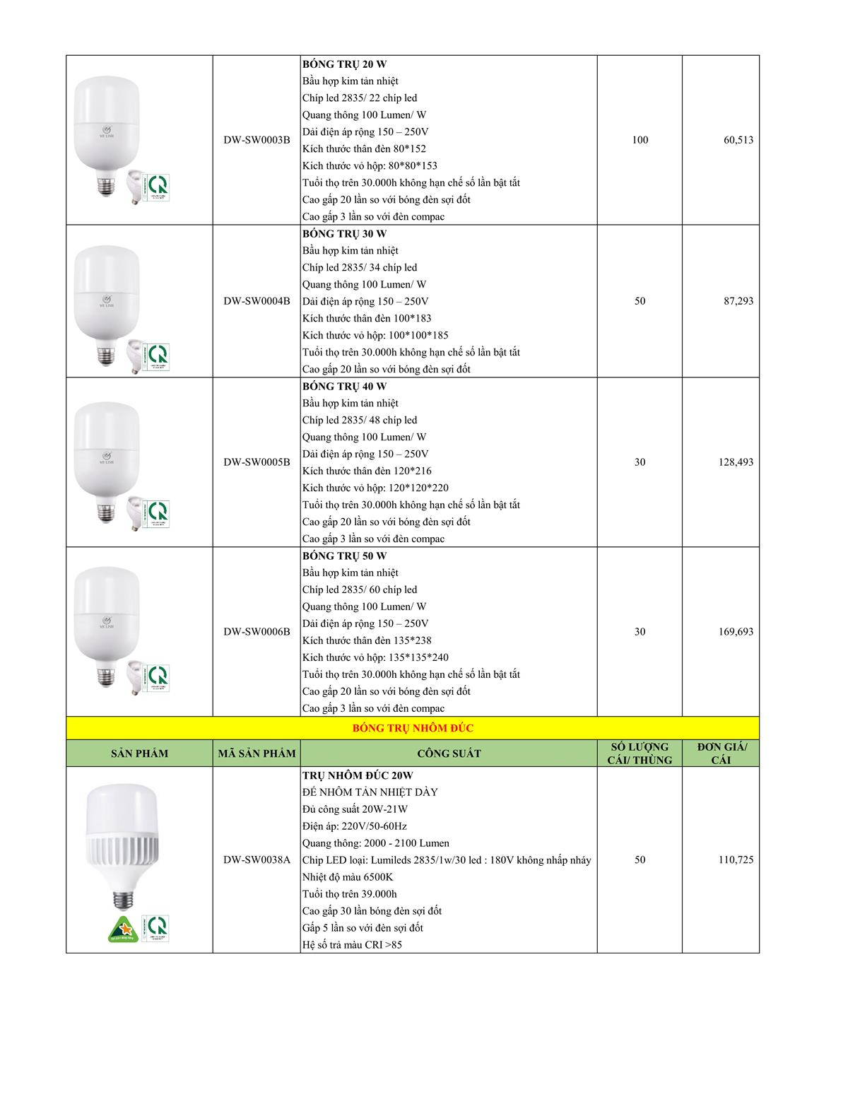 DW-SW0038A - Bóng đèn bulb trụ nhôm đúc cao cấp