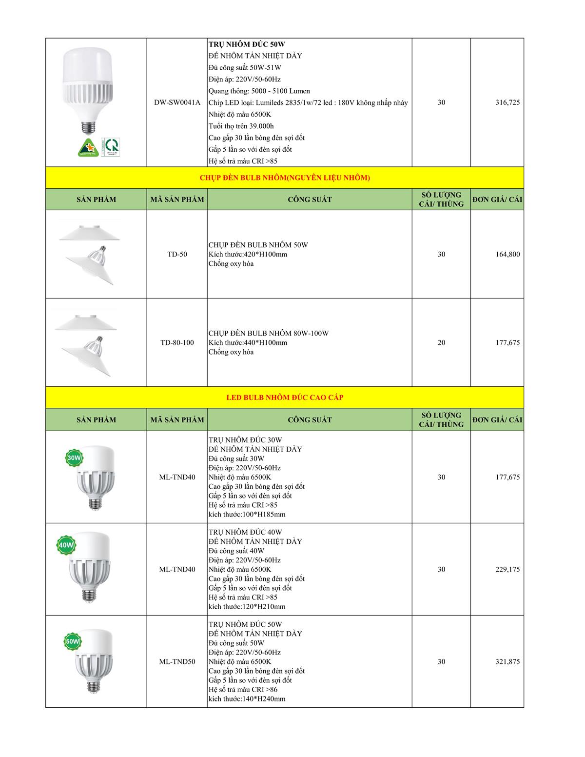 • Chip LED loại: Lumileds 2835/1w/30 led : 180V không nhấp nháy