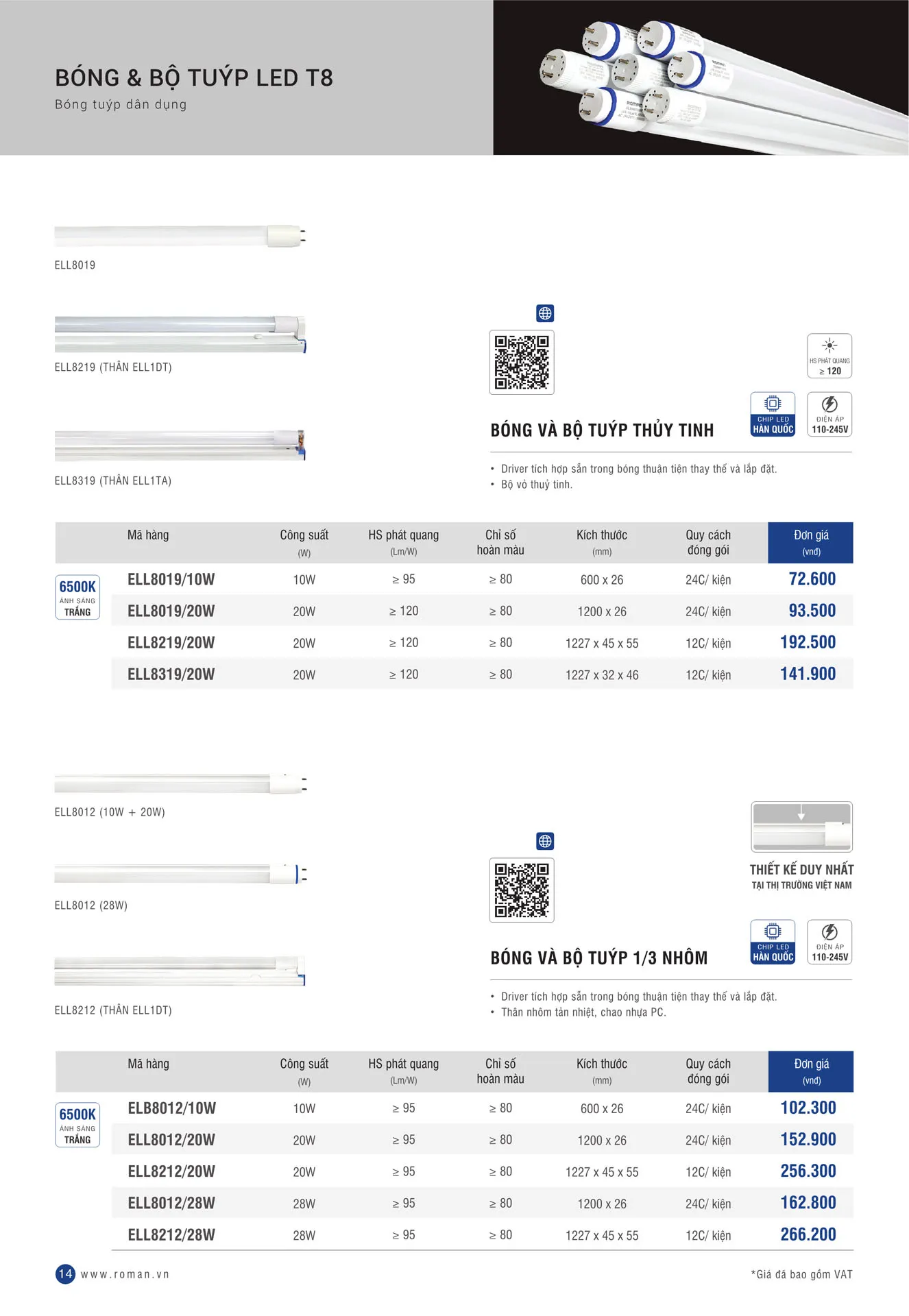 Bóng đèn Led Tube Roman ELL8012/20W Tản nhiệt nhôm 1.2m