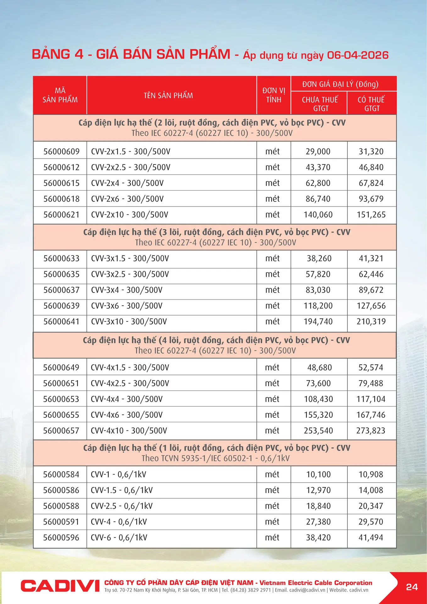 CVV-6.0 (1x7/1.04) | 56000596 | 41.494 | 12% | 36.515 |