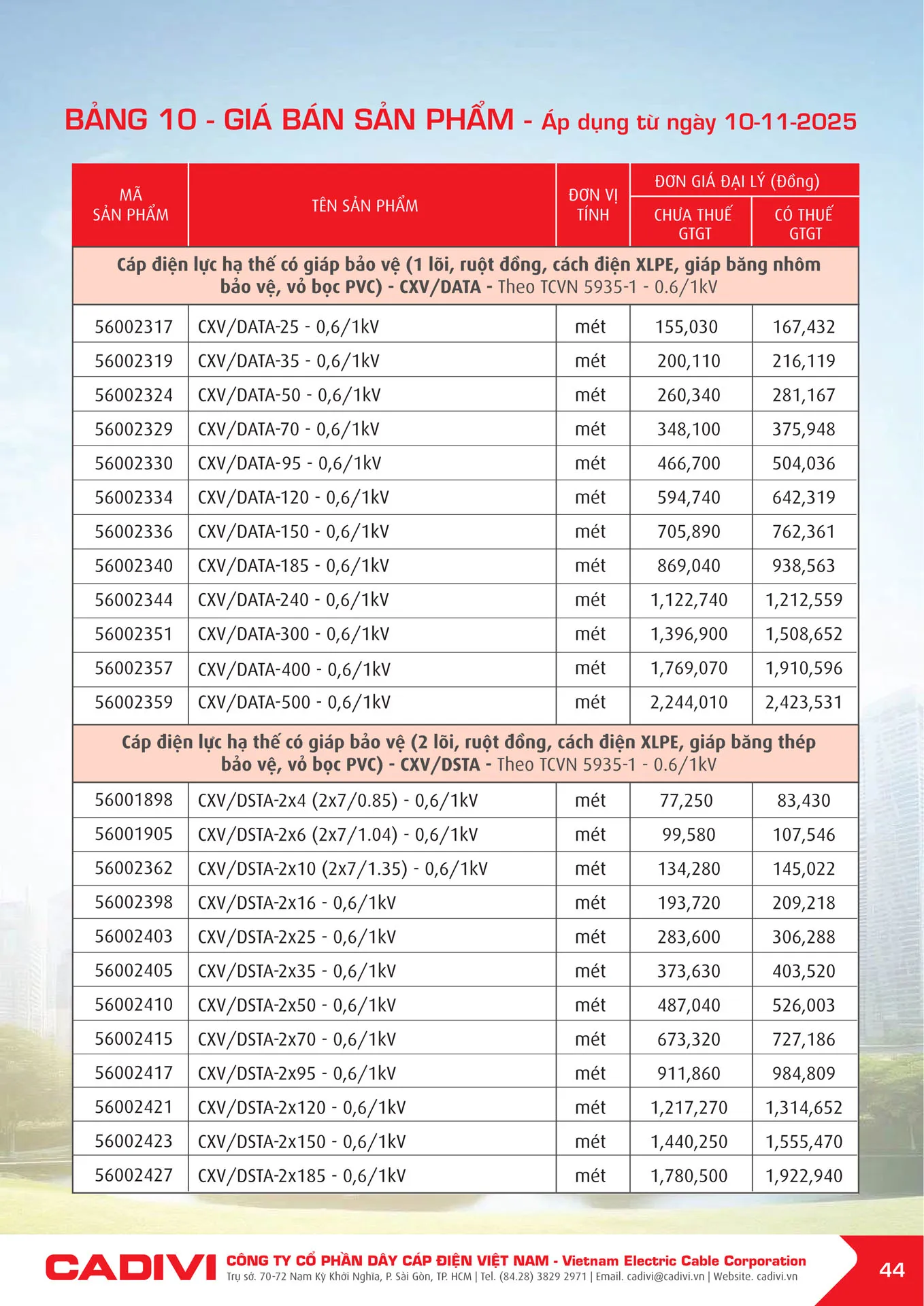 Quý khách hàng có nhu cầu mua số lượng nhiều thiết bị điện thương hiệu CADIVI, vui lòng gửi yêu cầu báo giá qua email [email protected] hoặc báo giá trực tiếp trên website để nhận chiết khấu ƯU ĐÃI TỐT NHẤT trong tháng 11.