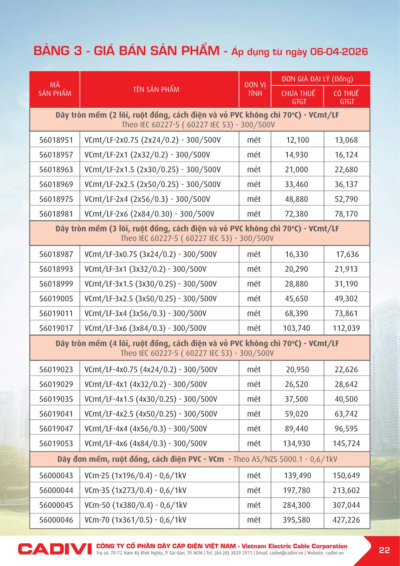 Quý khách hàng có nhu cầu mua số lượng nhiều thiết bị điện thương hiệu CADIVI, vui lòng gửi yêu cầu báo giá qua email [email protected] hoặc báo giá trực tiếp trên website để nhận chiết khấu ƯU ĐÃI TỐT NHẤT trong tháng 4.