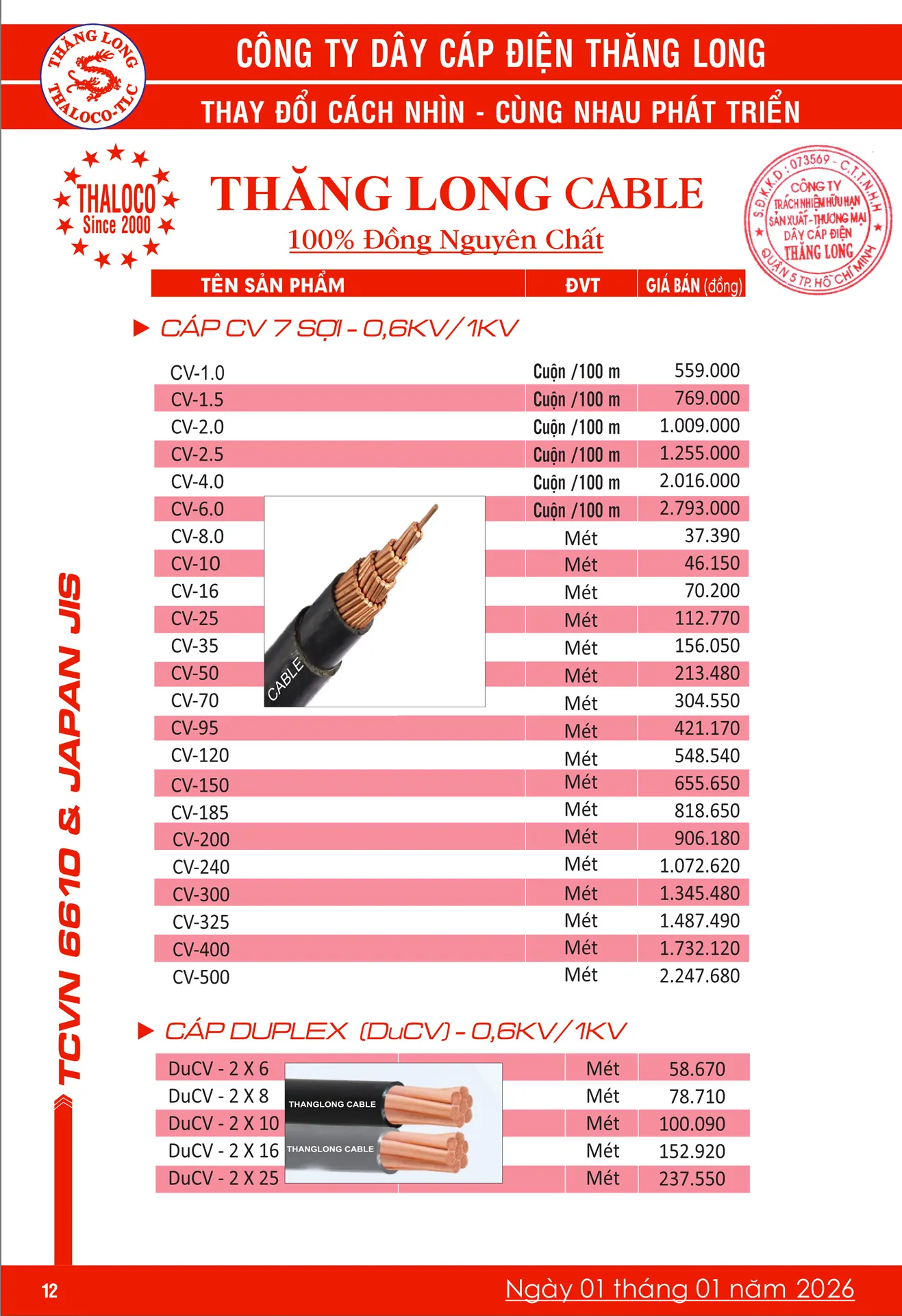 CV-6.0 (cuộn/100m) | CV-6.0 | 2.793.000 |