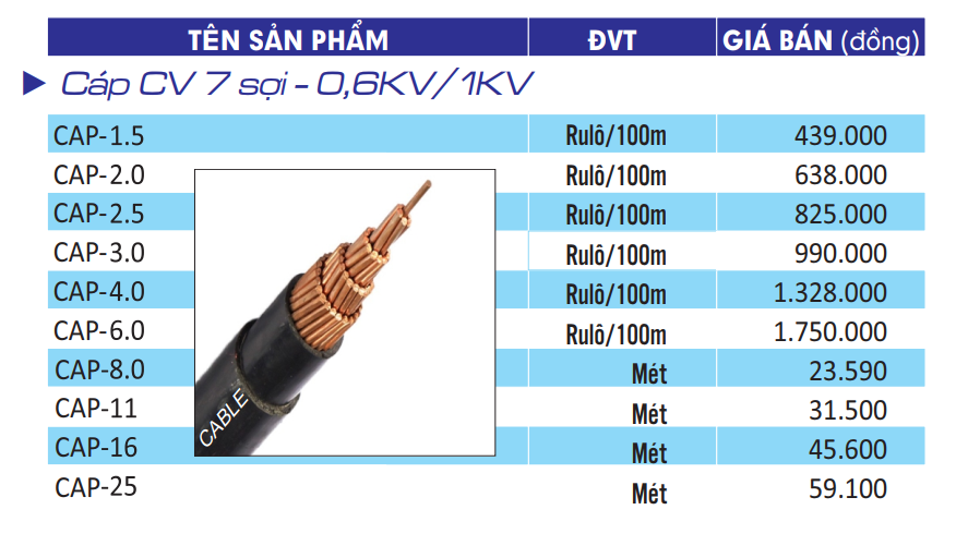CAP-1.5 - Cáp CV 7 sợi, 0.6/1KV TLC Cable
