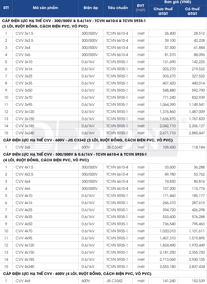 CVV - 3x240 | CVV - 3x240 | 2.885.447 | 14% | 2.481.485 |