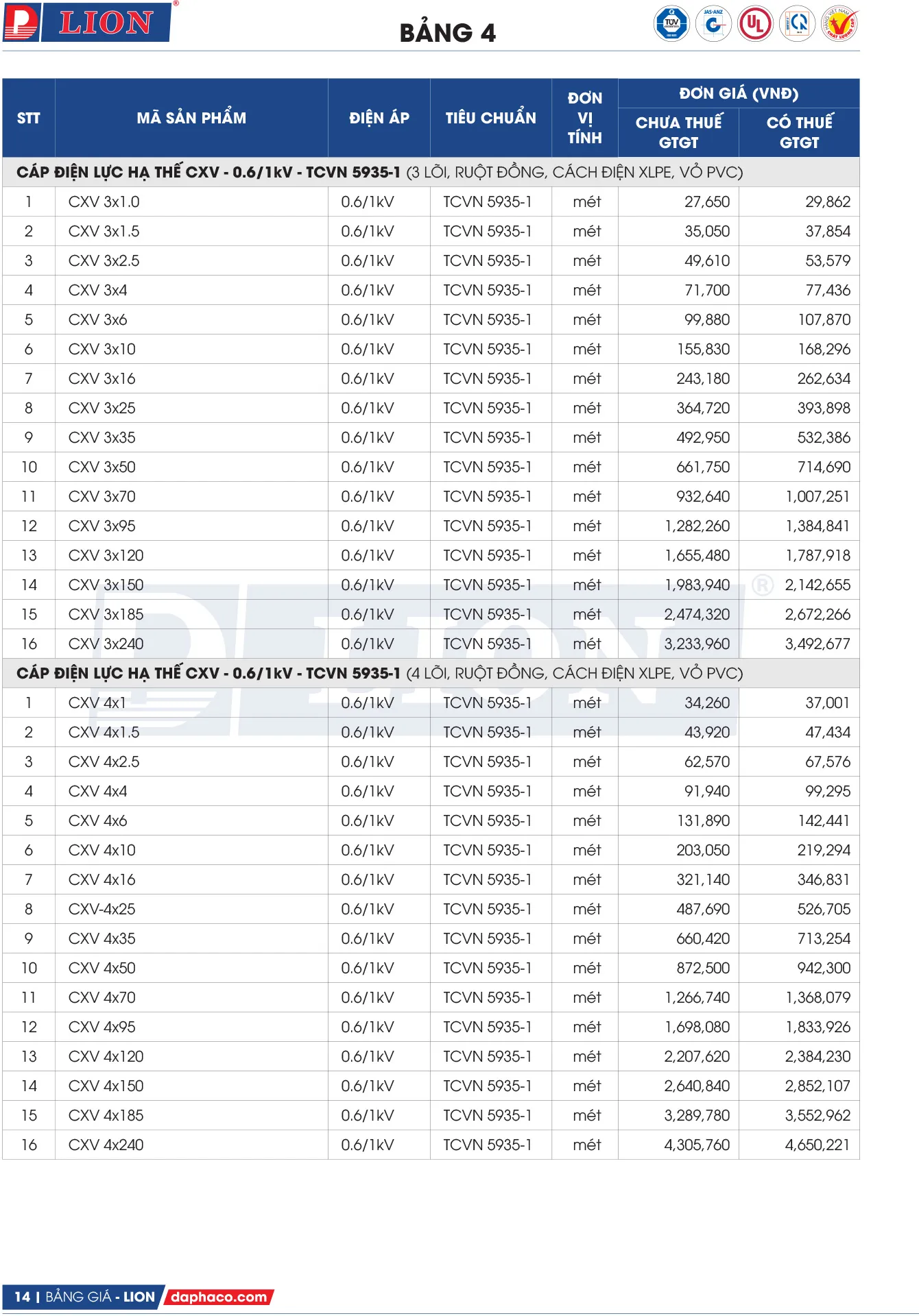 LION CXV 3x95 | CXV 3x95 | 1.384.841 | 5% | 1.315.599 |