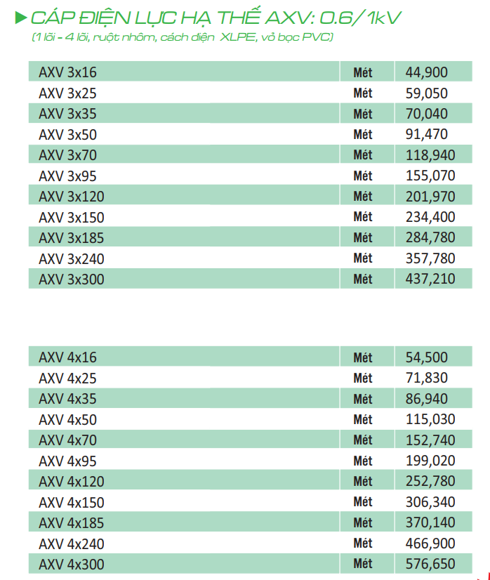 AXV 3x70 | AXV 3x70 | 118.940 | 5% | 112.995 |