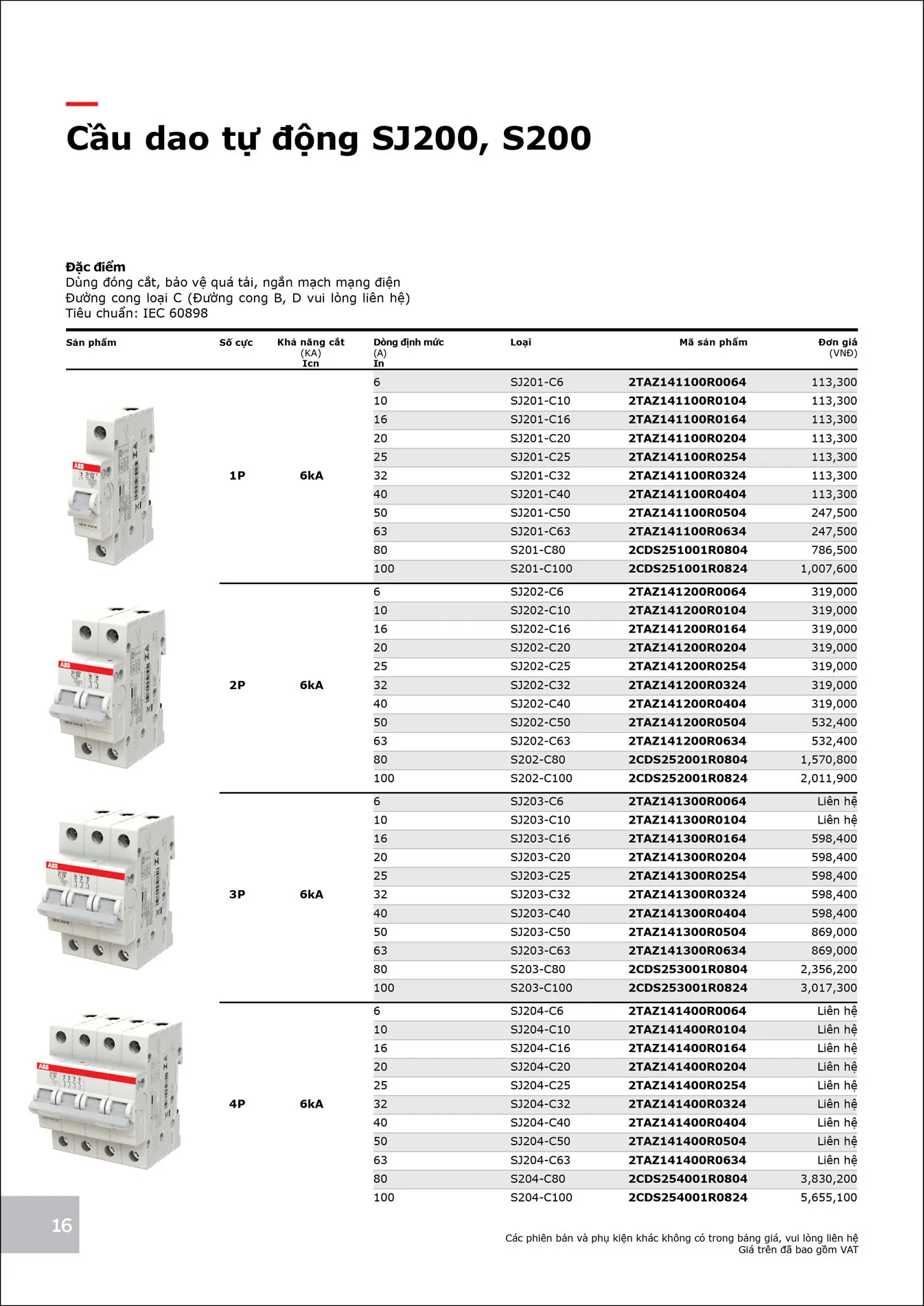 Cầu dao tự động MCB ABB 2P SJ202-C6 6kA